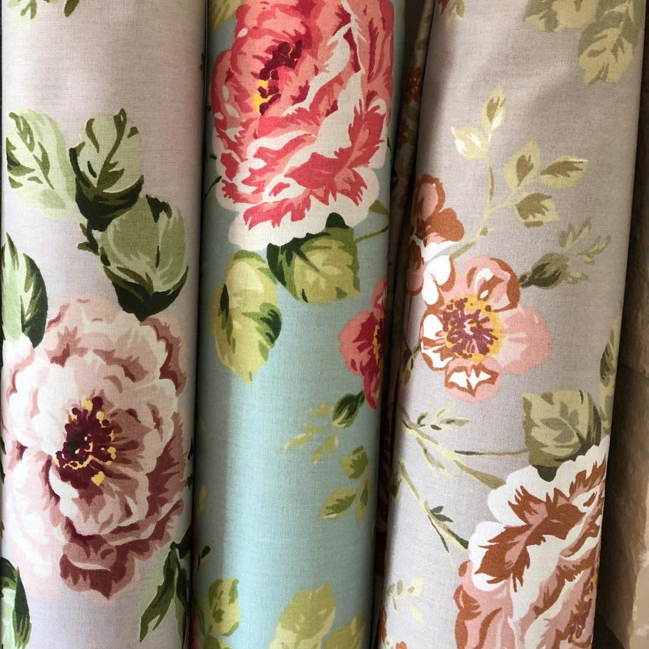 AU Maison cotton fabric Sophia Dusty Violet floral fabric large flowers in old pink old green violet purple