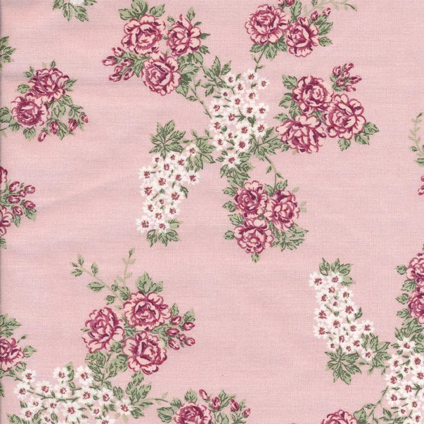 Der Isabella Light Rose Baumwollstoff von Au Maison verzaubert mit einem lieblichen Rosenmuster in sanftem Vintage-Stil. Zarte Rosen in dunklen Rosé-Tönen schmücken den Stoff auf hellem rosa Hintergrund und verleihen ihm eine romantische, zeitlose Ausstrahlung – perfekt für feminine Nähprojekte im Landhaus- oder Shabby-Chic-Stil.