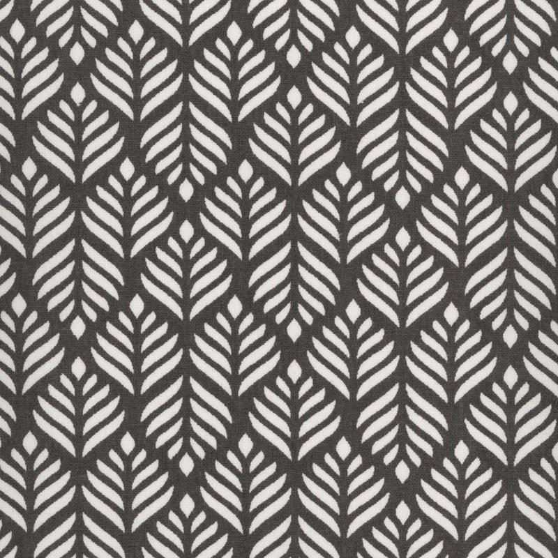 AU Maison Baumwollstoff Trigo Almost Black Blättermotiv grafisches Muster in kohlschwarz eierschalenweiß