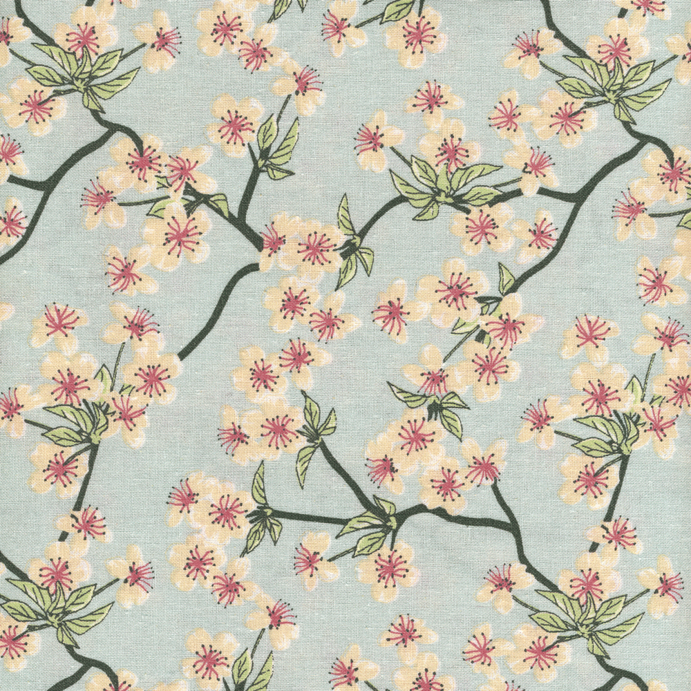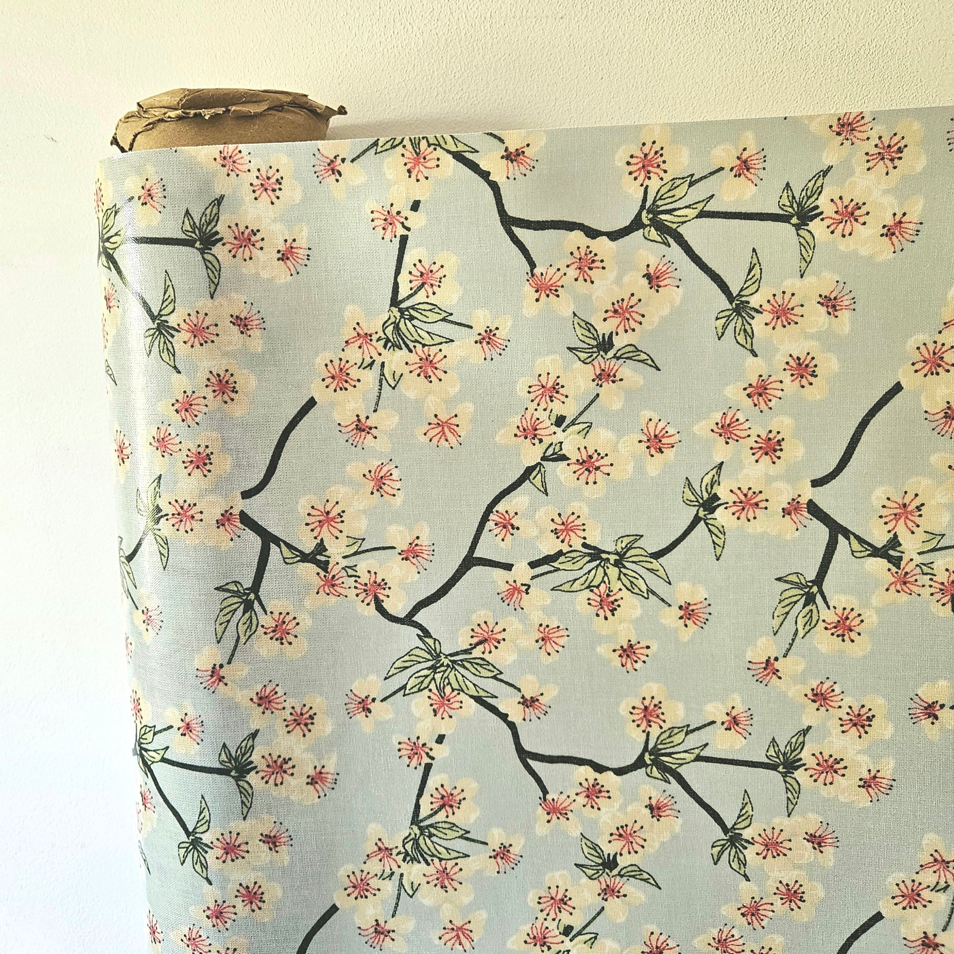 AU MAISON Wachstuch Amalie Light Blue Kirschblüten hellblau pastellblau, beschichtete Baumwolle