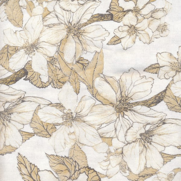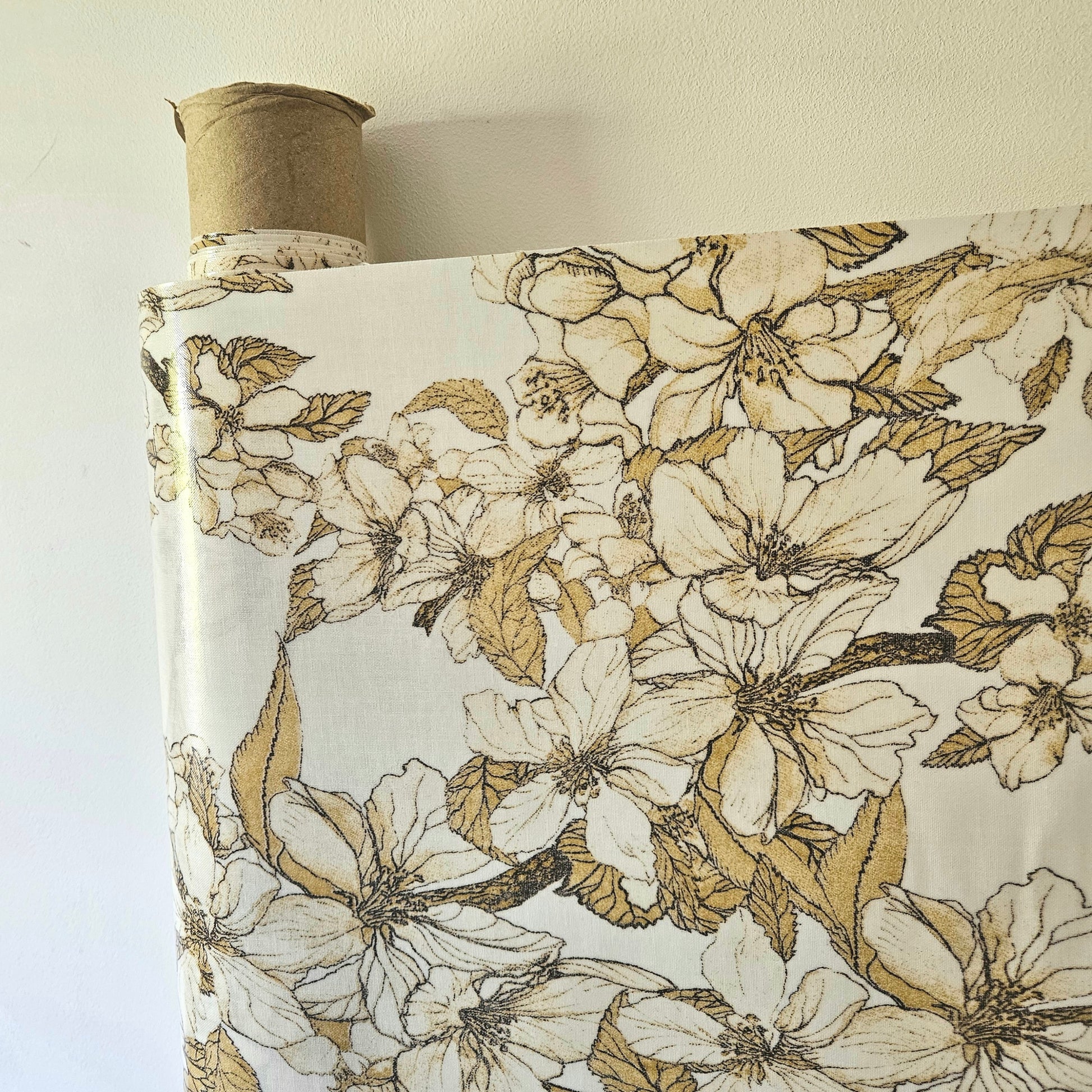 AU MAISON Wachstuch Bloom It, Blumen Sträucher, senfgelb naturweiss, beschichtete Baumwolle