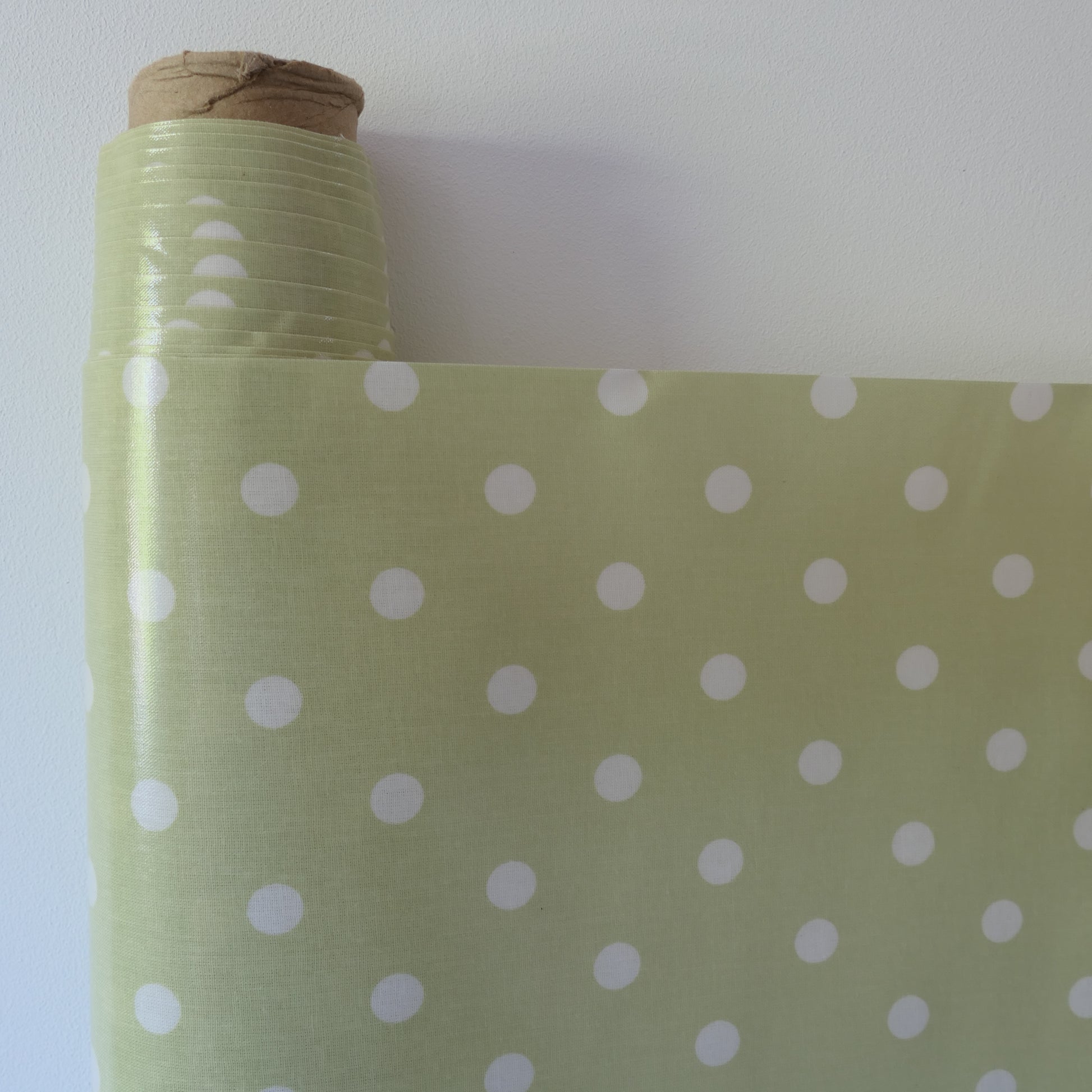 AU MAISON Wachstuch Dots Big Dusty Green Grüne Tupfen hellgrün, beschichtete Baumwolle