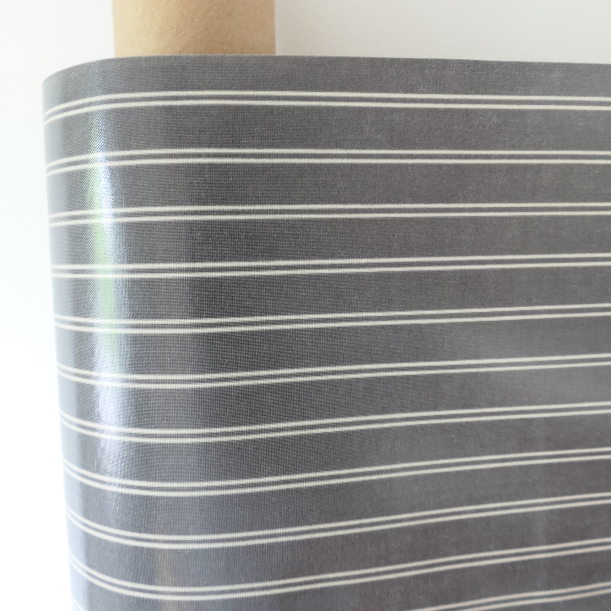 Pflegeleichtes Wachstuch mit eleganten Streifen in dunkelgrau und creme.