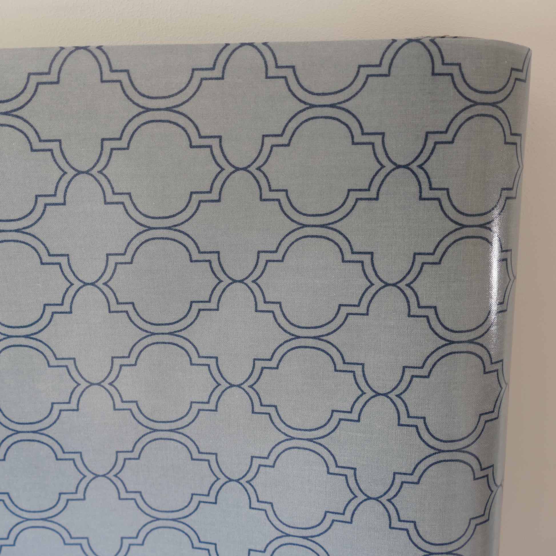 Pflegeleichtes Wachstuch mit indischem Rautenmuster in graublau und dunkelblau, dusty blue/midnight blue.