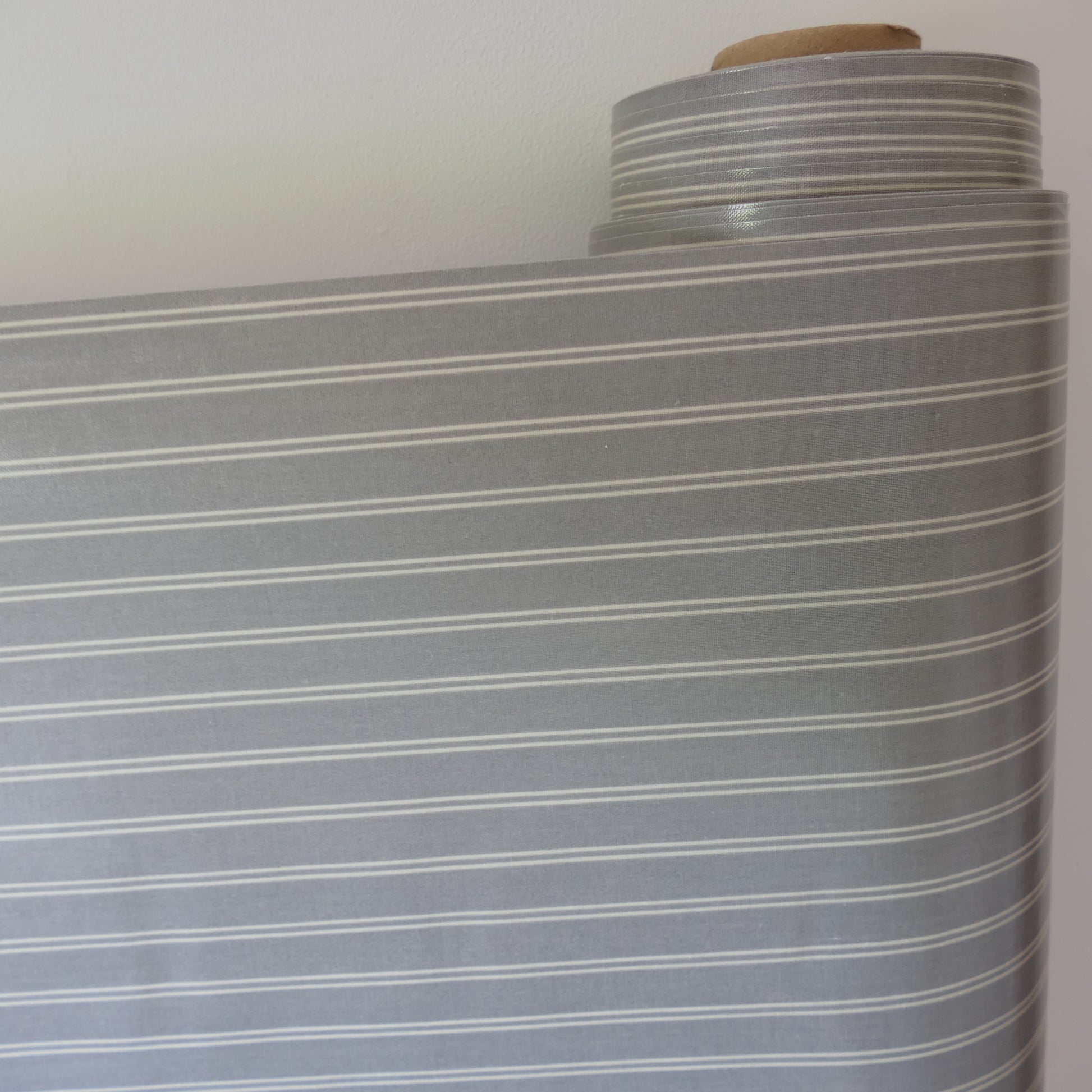 AU MAISON Wachstuch Ribbons Latte, Streifen hellgrau creme, beschichtete Baumwolle