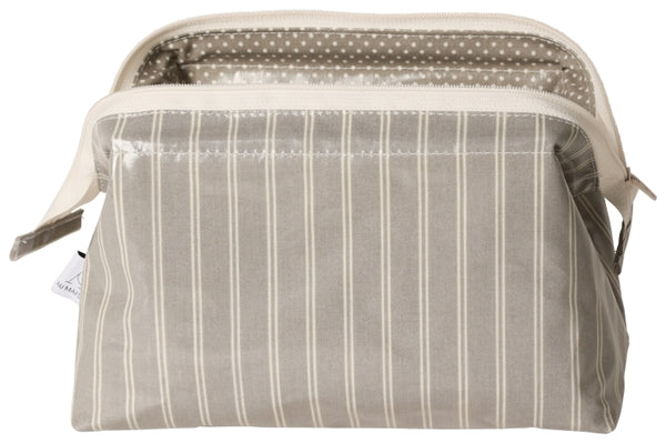 Pflegeleichtes Wachstuch mit eleganten Streifen in latte/hellgrau und creme.
