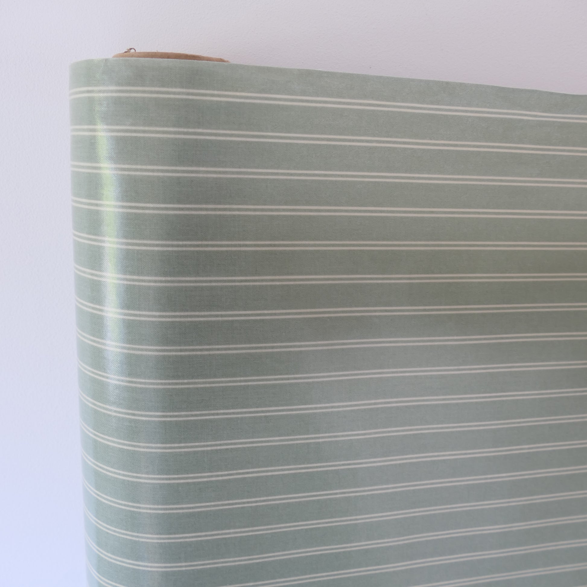 Pflegeleichtes Wachstuch mit eleganten Streifen in verte/pastellgrün und creme.