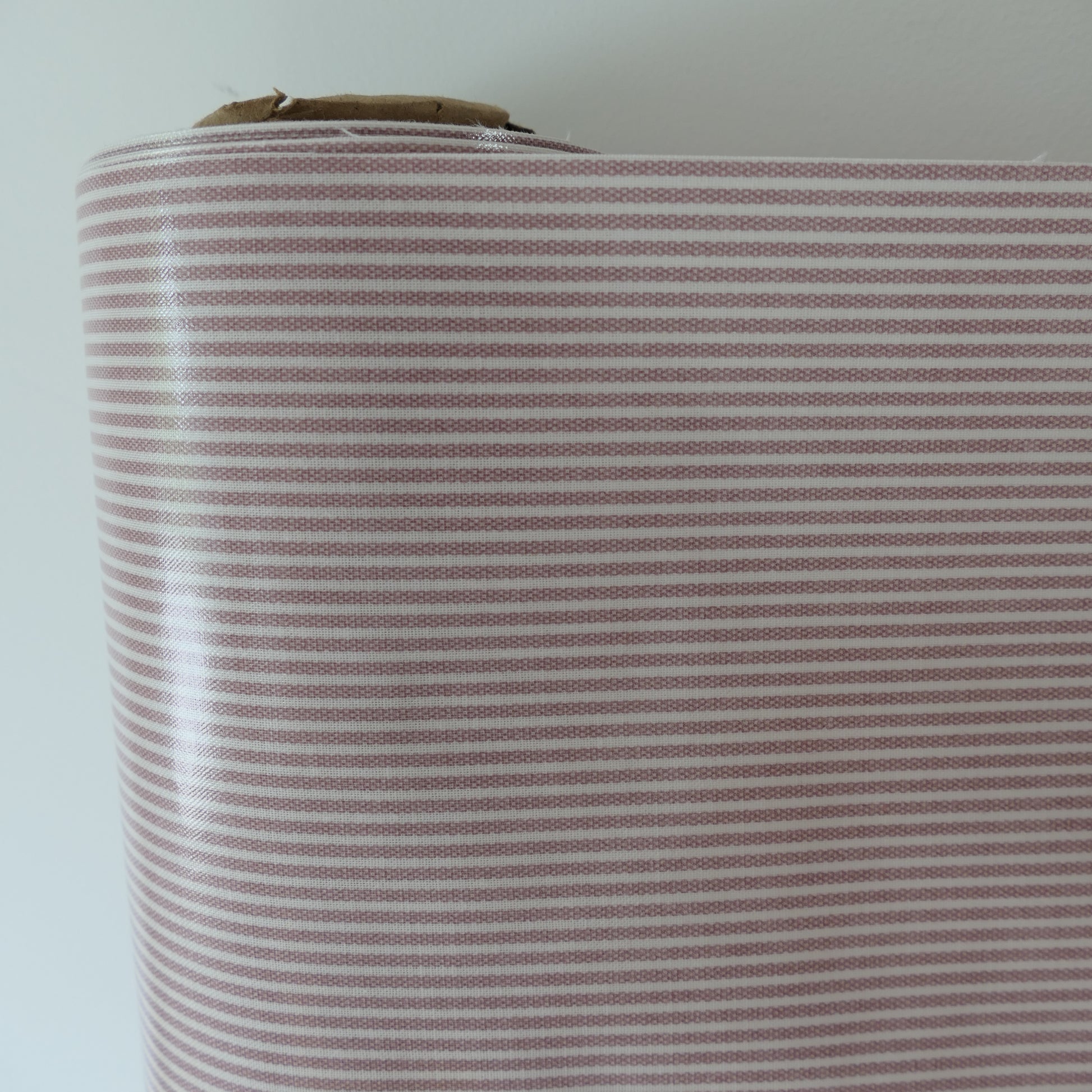 Pflegeleichtes Wachstuch mit schmalen Streifen in woodrose / altrosa. Die Streifen sind 2mm breit.