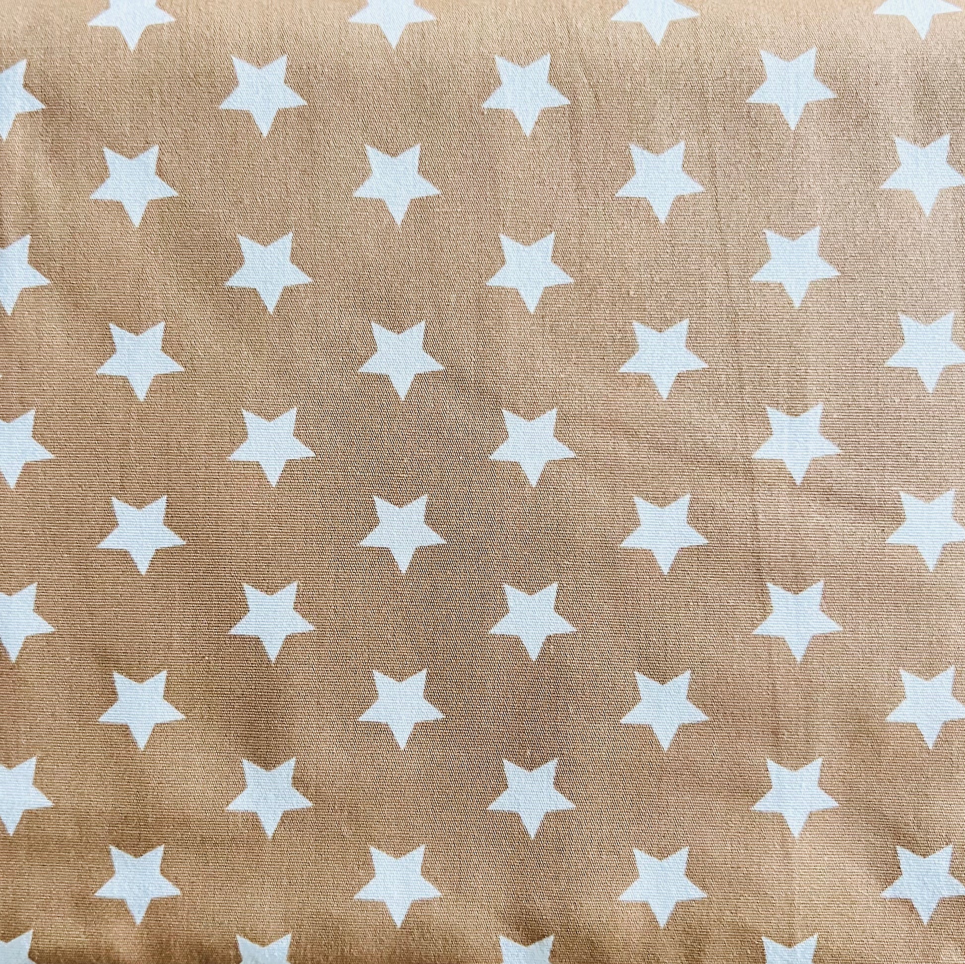 Dieser zeitlose Baumwollstoff in Beige mit weißen Sternen (ca. 15 mm groß) ist vielseitig einsetzbar und perfekt für kreative Nähprojekte. Ob für Deko, Kissen, Taschen oder Kleidung – das klassische Design lässt sich wunderbar kombinieren.