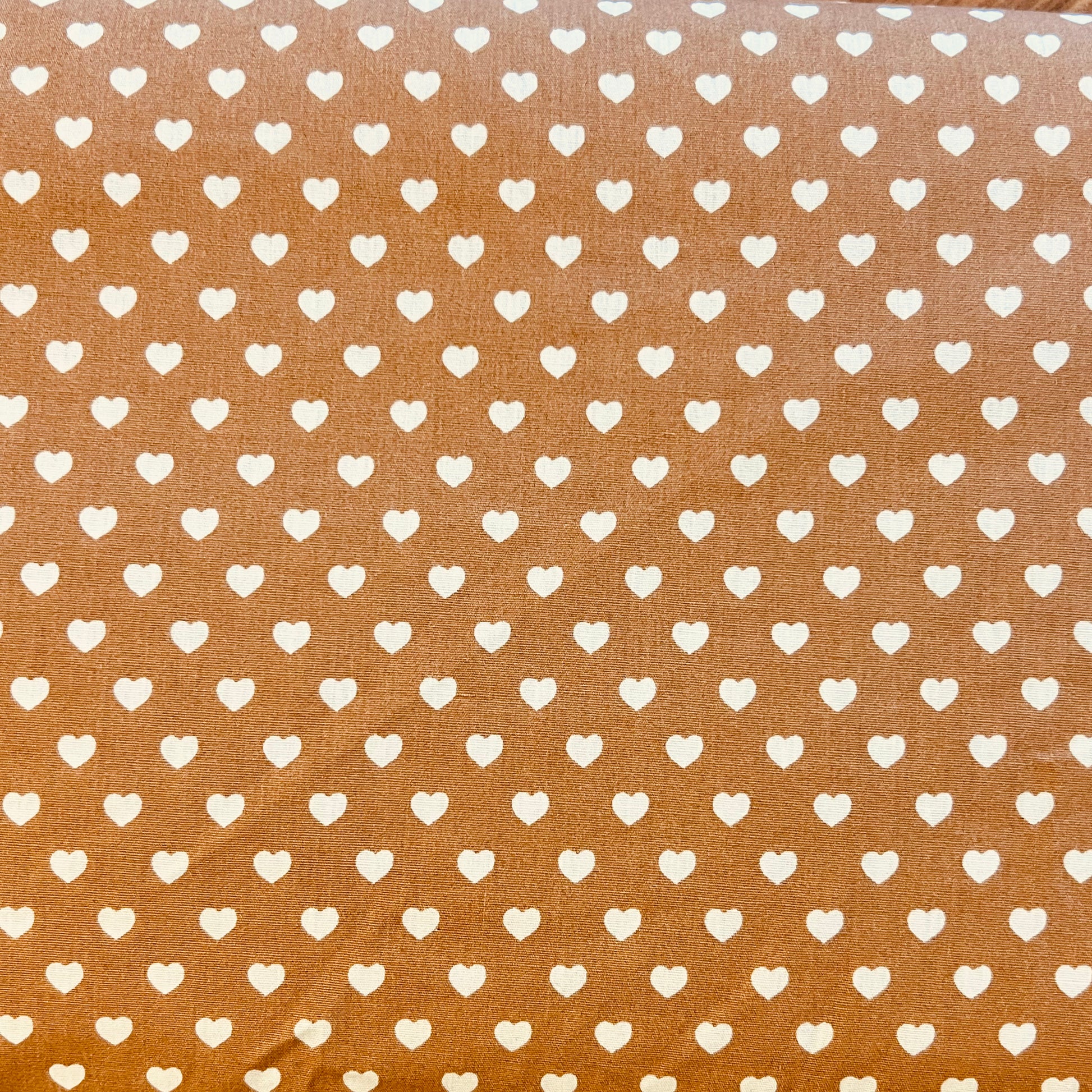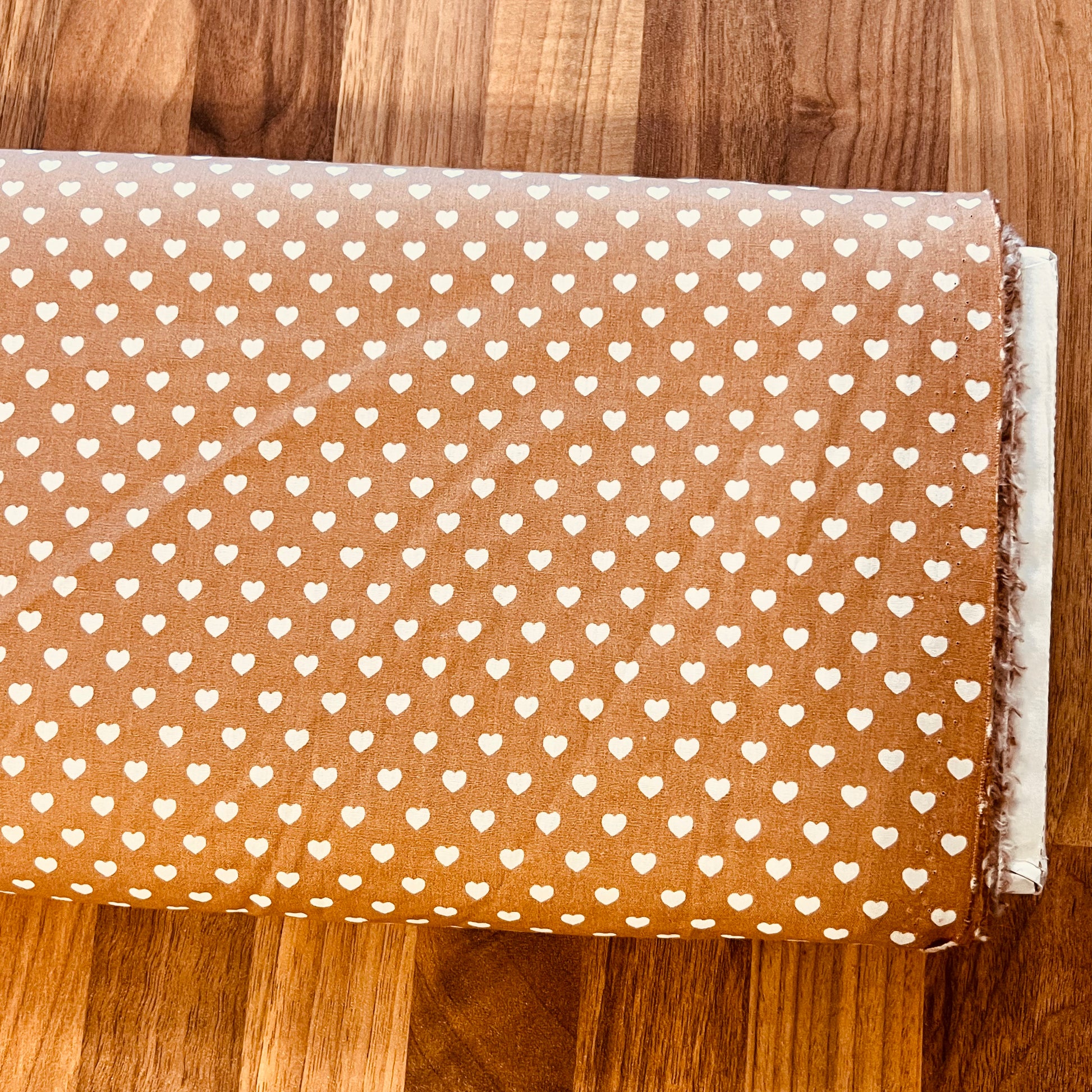 Zarter Charme für deine Nähprojekte: Dieser Baumwollstoff in Beige ist mit gleichmäßig verteilten weißen Herzen (ca. 5 mm) bedruckt. Das liebevolle Design eignet sich ideal für Patchwork, Taschen, Heimtextilien oder Accessoires.