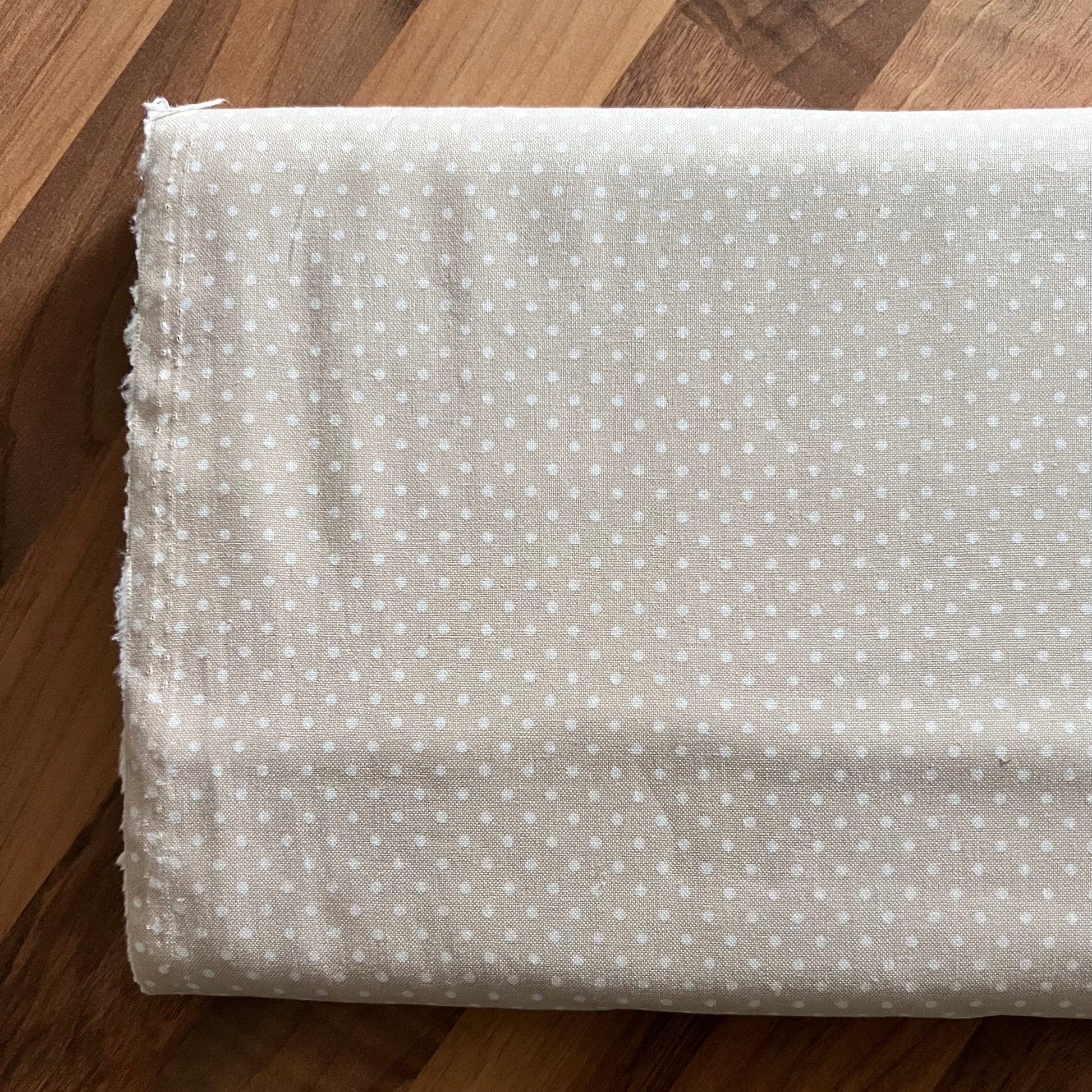 Baumwollstoff HELL BEIGE mit weißen 2 mm PÜNKTCHEN, 140 cm breit, Pünktchen Stoff Tupfen Punkte