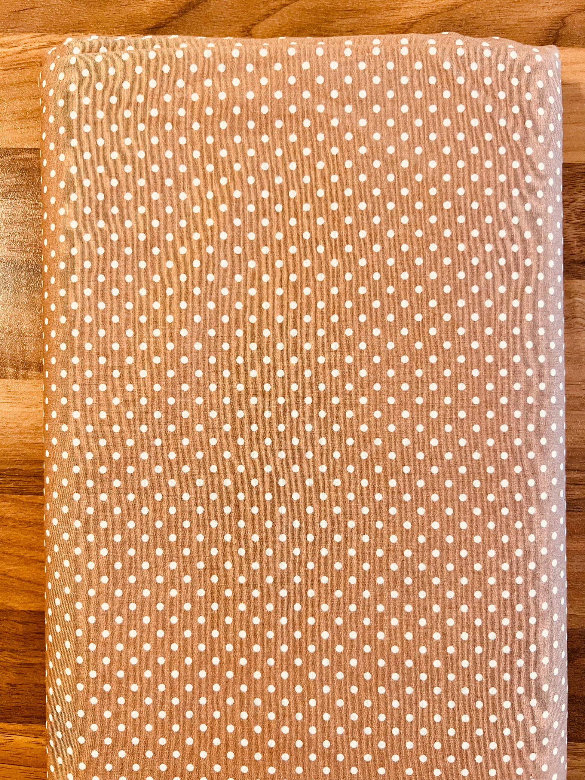 Baumwollstoff BEIGE mit weißen 2 mm PÜNKTCHEN, 140 cm breit, Pünktchen Stoff Tupfen Punkte