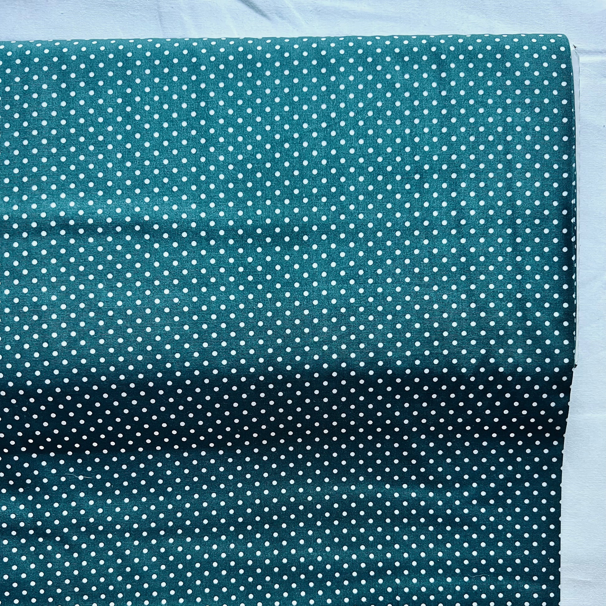 Dieser Baumwollstoff in Dunkelgrün ist mit feinen 2 mm kleinen Pünktchen bedruckt - ein zeitloses und charmantes Muster, das sich wunderbar eignet für Kleidung, Accessoires, Patchwork, Taschen oder Deko. Die dezente Optik passt zu vielen Stilrichtungen und lässt sich gut kombinieren.