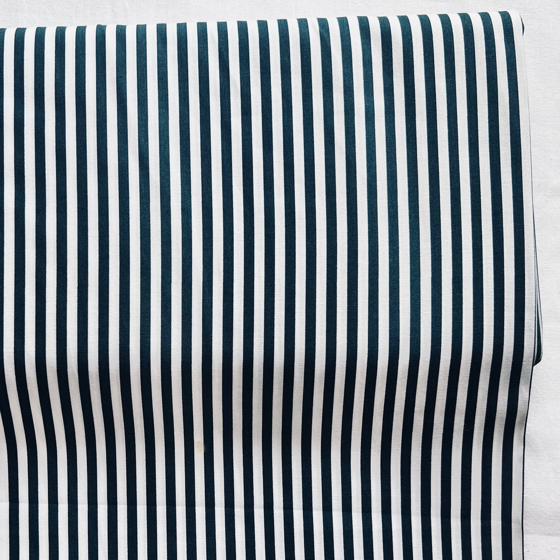 Dieser dunkelgrüne Baumwollstoff mit 5 mm breiten weißen Streifen überzeugt mit zeitloser Eleganz. Ideal für Taschen, Kissen, Kleidung, Wohntextilien, Patchwork oder Deko. Die gleichmäßigen Streifen sorgen für Struktur mit edlem Charme.