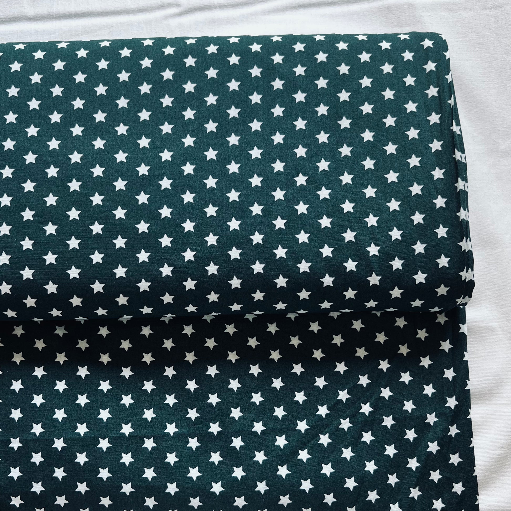 Dieser dunkelgrüne Baumwollstoff ist mit ca. 10 mm großen Sternen bedruckt - ein zeitloses Muster, das sowohl modern als auch verspielt wirkt. Ideal für Accessoires, Kleidung, Patchwork, Taschen, Heimtextilien oder Deko. Ein vielseitiger Stoff für kreative Projekte mit einem Hauch Sternenzauber.