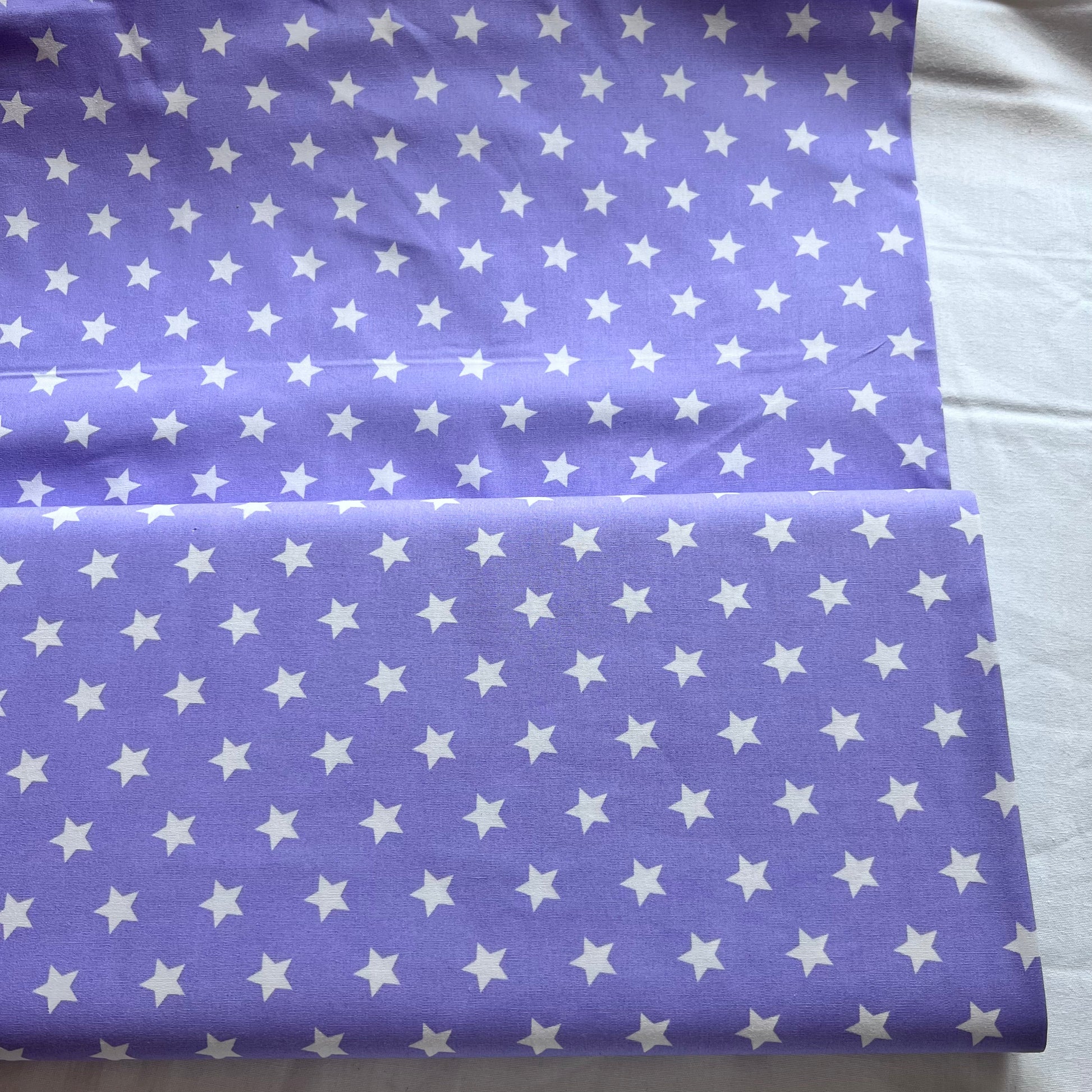 Ein himmlisches Muster auf zartem Grund: Dieser Baumwollstoff in Flieder zeigt gleichmäßig verteilte Sterne mit 15 mm Größe. Das freundliche Design eignet sich wunderbar für Heimtextilien wie Kissen und Decken, Taschen, Kleidung oder liebevoll genähte Geschenke. Der weiche Stoff bringt eine verspielte Note in jedes Nähprojekt.