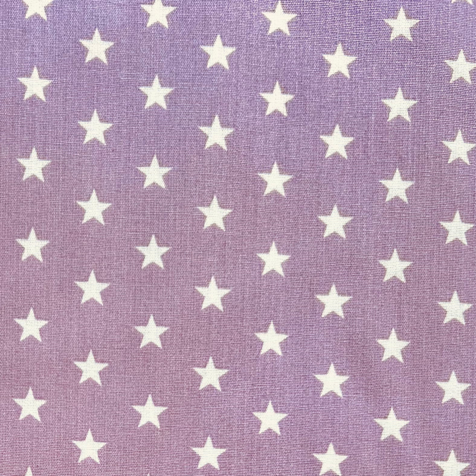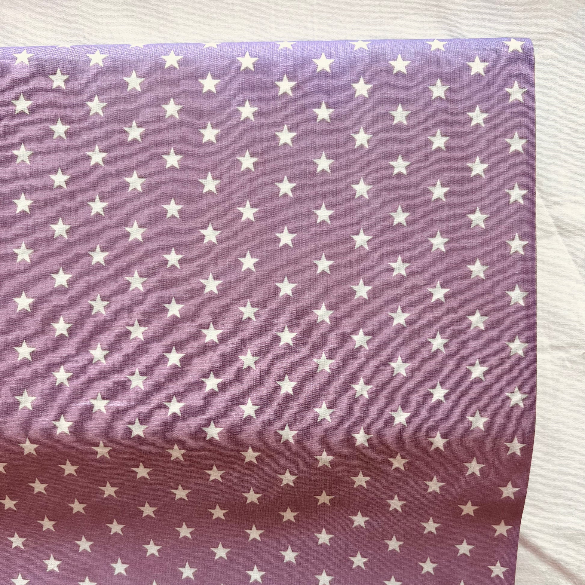 Baumwollstoff HELLLILA mit WEISSEN STERNEN 10 mm, 140 cm breit, Sternchenstoff