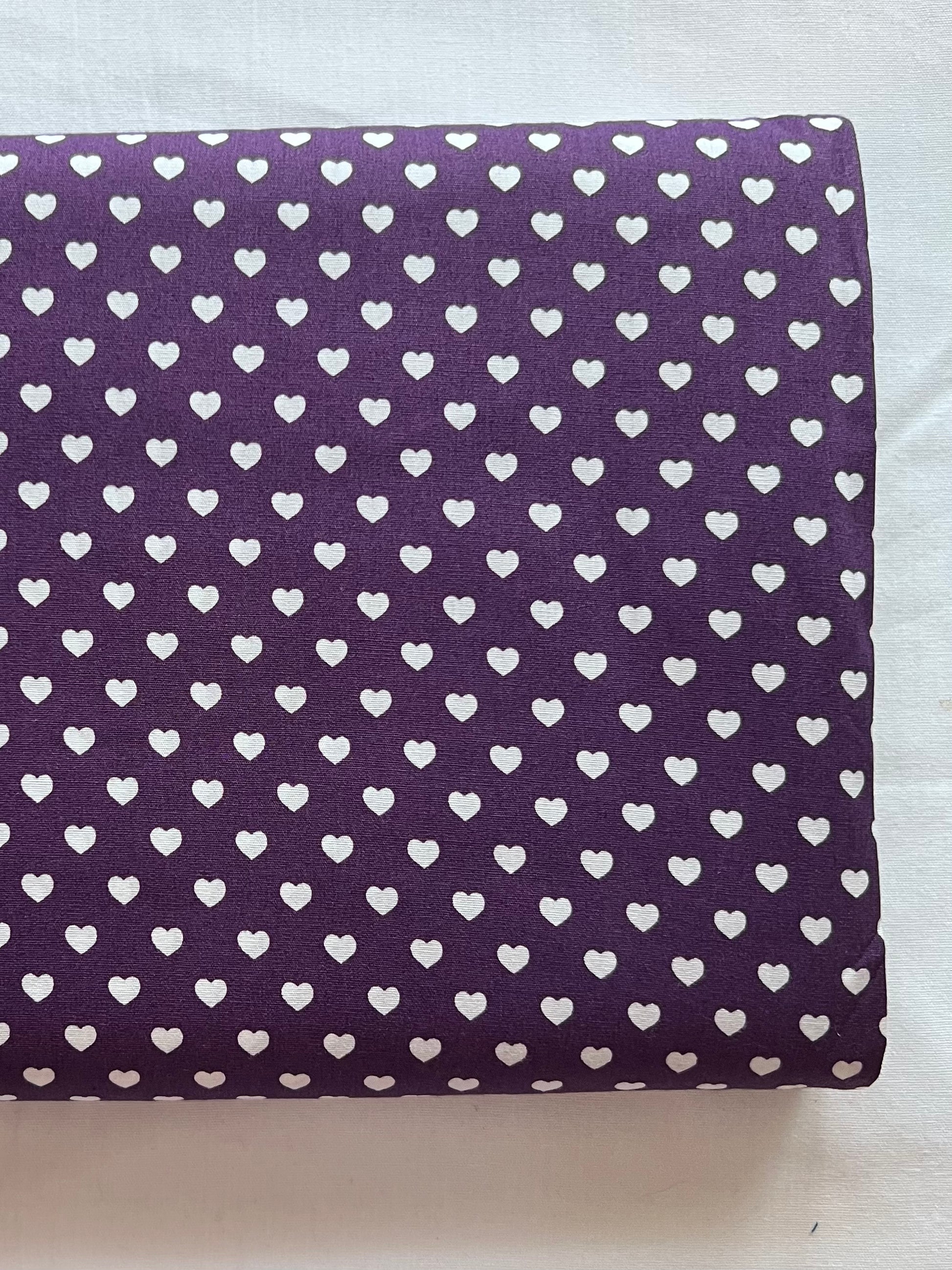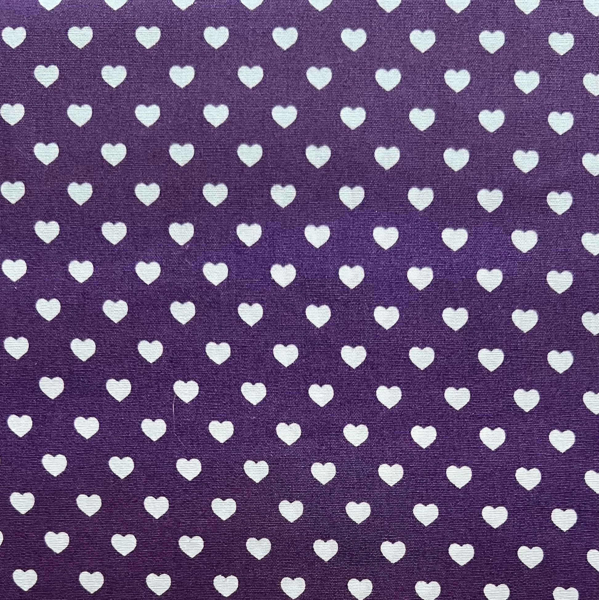 Baumwollstoff LILA mit weißen 5 mm HERZEN, 140 cm breit, Herzenstoff