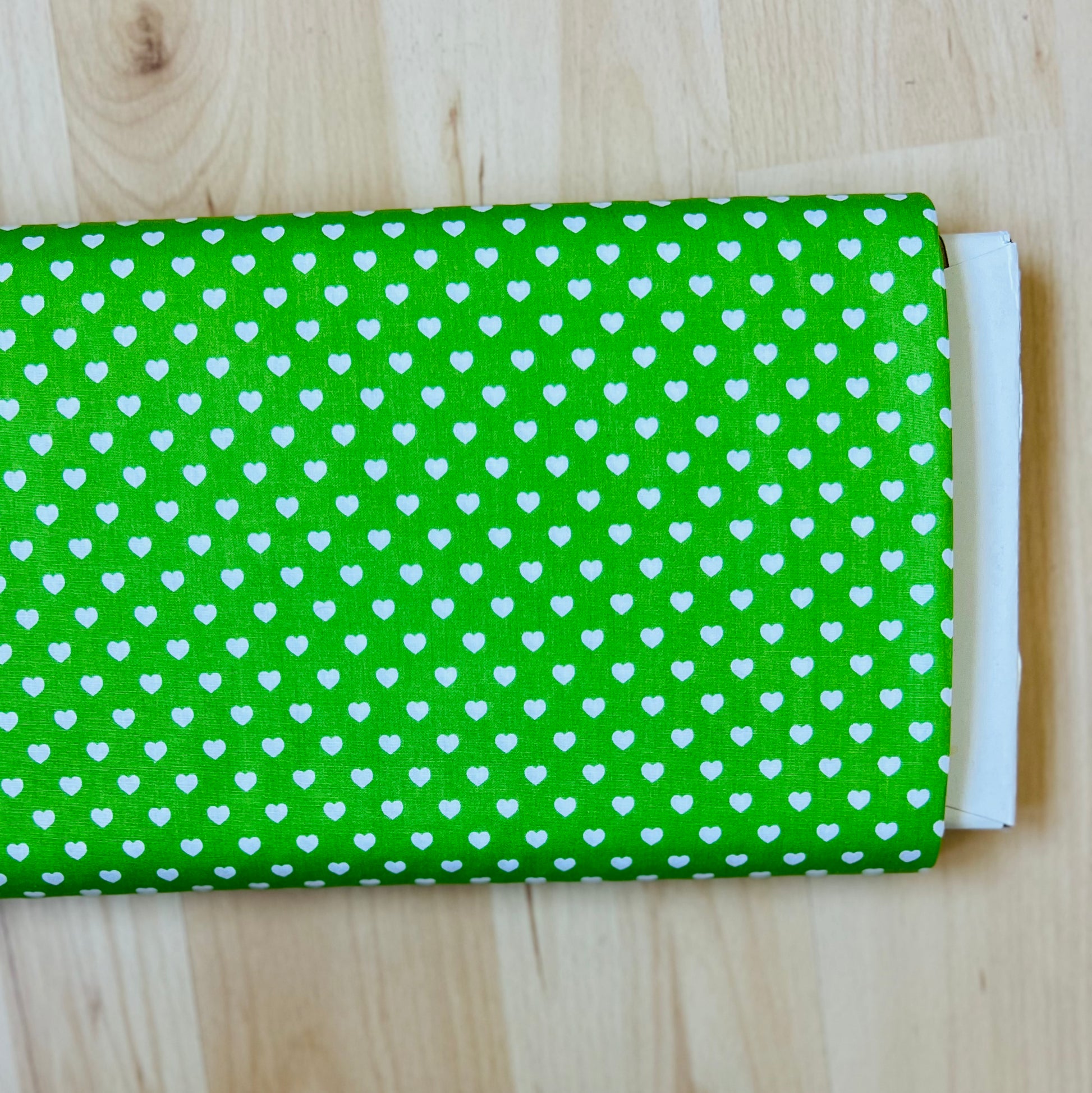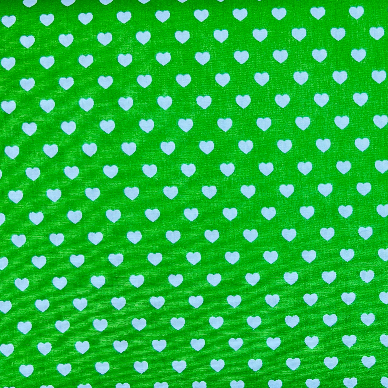 Dieser fröhliche Baumwollstoff in frischem Hellgrün ist mit kleinen 5 mm großen Herzen übersät - ein liebevolles Design für viele Nähprojekte. Perfekt für Kleidung, Accessoires, Taschen, Kissen oder Deko. Die sanfte Farbe und das fröhliche Design machen ihn auch ideal als Kombistoff zu Unis oder Musterstoffe.