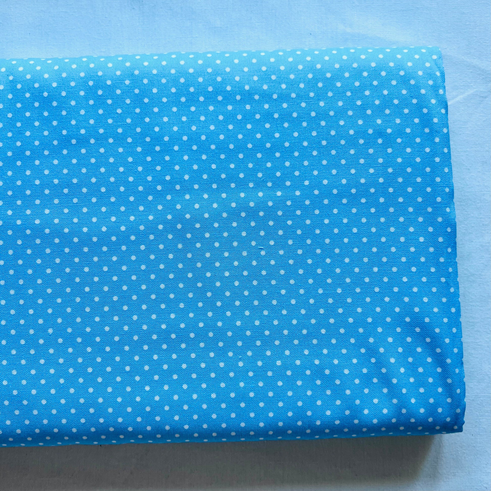 Gepunktet und wunderbar vielseitig: Dieser hellblaue Baumwollstoff mit feinen weißen Pünktchen ist ideal für Kleidung, Accessoires, Patchwork, Taschen oder Deko. Das klassische Muster sorgt für eine sanfte, freundliche Optik.