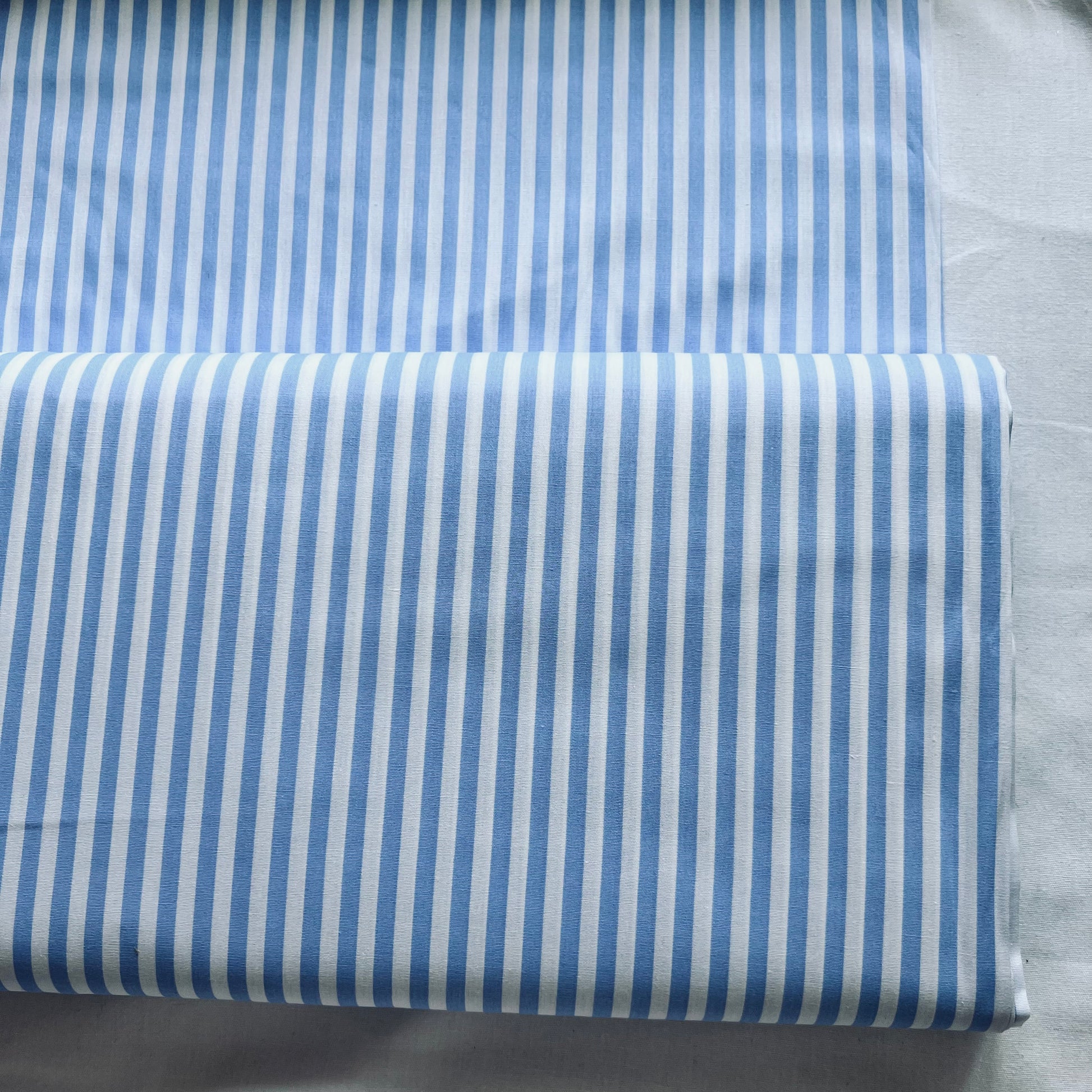 Dieser hellblaue Baumwollstoff mit weißen 5 mm Streifen bringt frischen Wind in deine Nähideen. Das zeitlose Design wirkt klar und freundlich - ideal für Taschen, Kissen, Kleidung, Wohntextilien, Patchwork oder Deko.