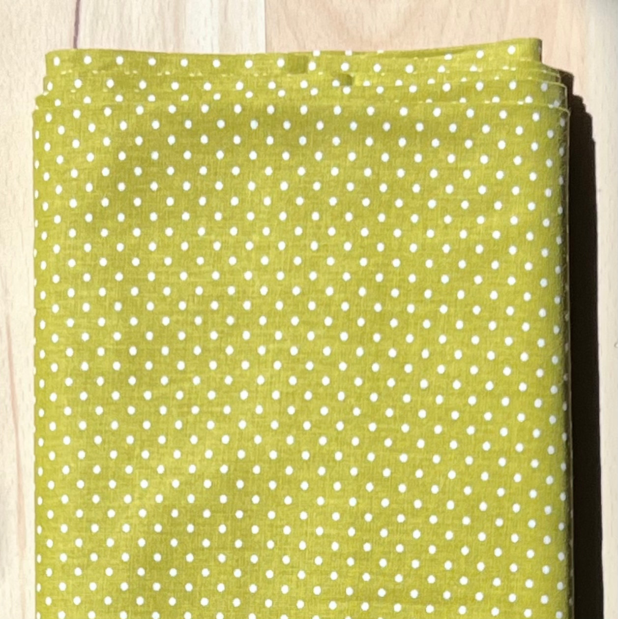 Dieser Baumwollstoff in zartem Lindgrün ist mit feinen 2 mm kleinen Pünktchen bedruckt. Das verspielte, zeitlose Design eignet sich perfekt für Kleidung, Accessoires, Patchwork, Taschen oder Deko. Die natürliche Farbe und das feine Muster machen diesen Stoff zu einem beliebten Kombipartner für viele Nähprojekte.