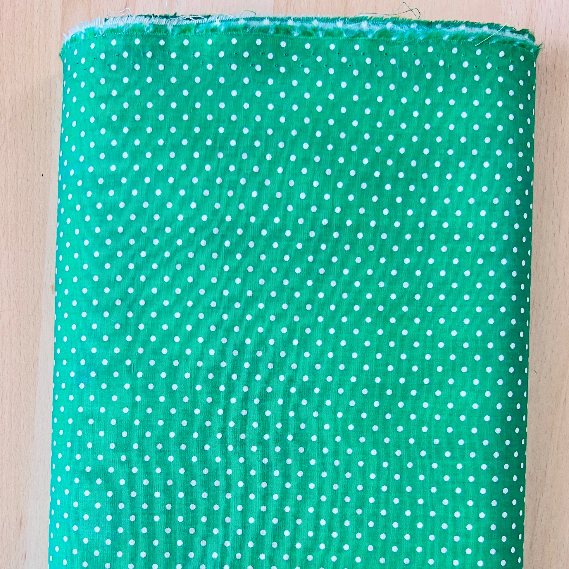 Baumwollstoff GRÜN mit weißen 2 mm PÜNKTCHEN, 140 cm breit, Punktestoff Tupfenstoff