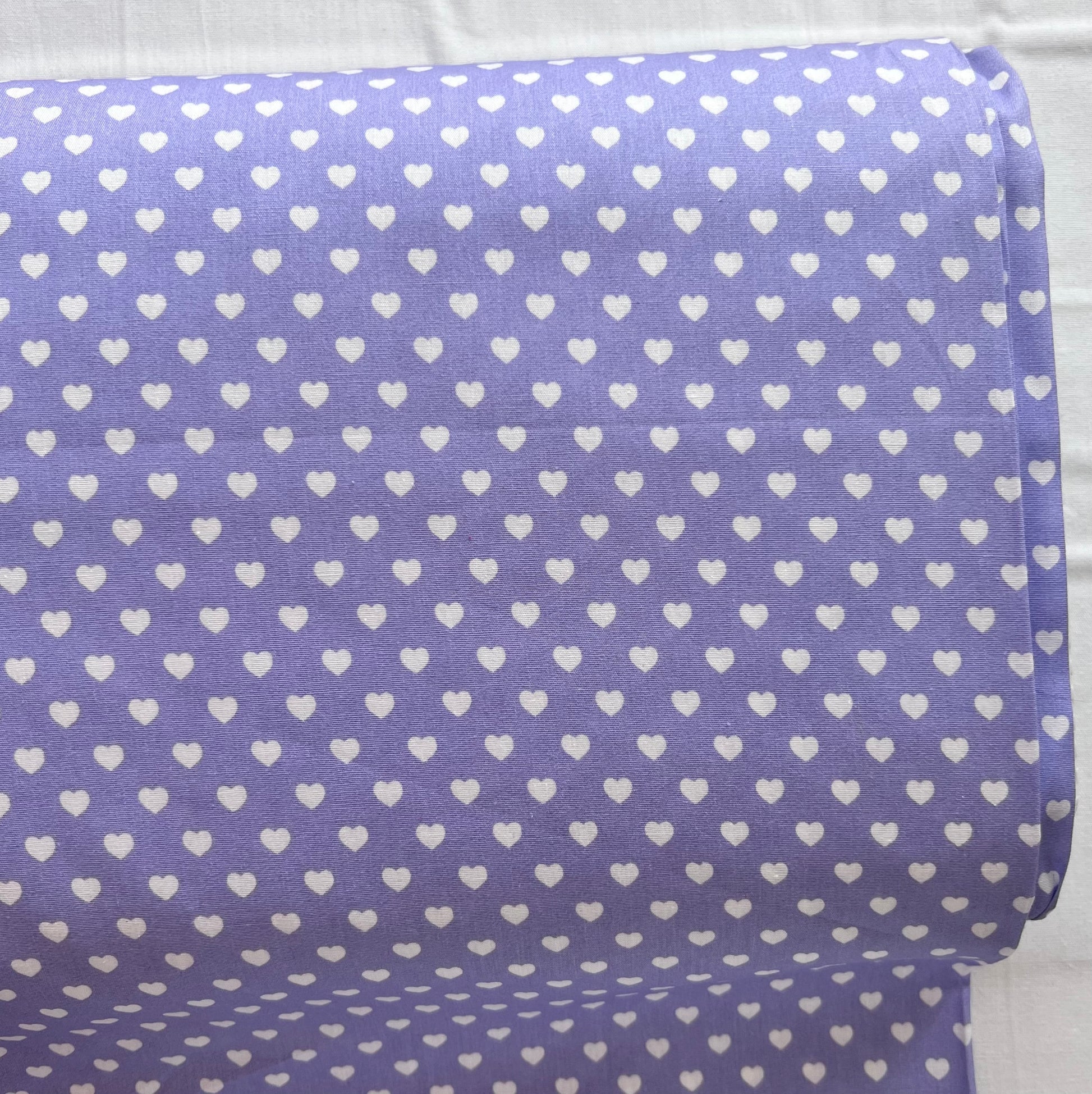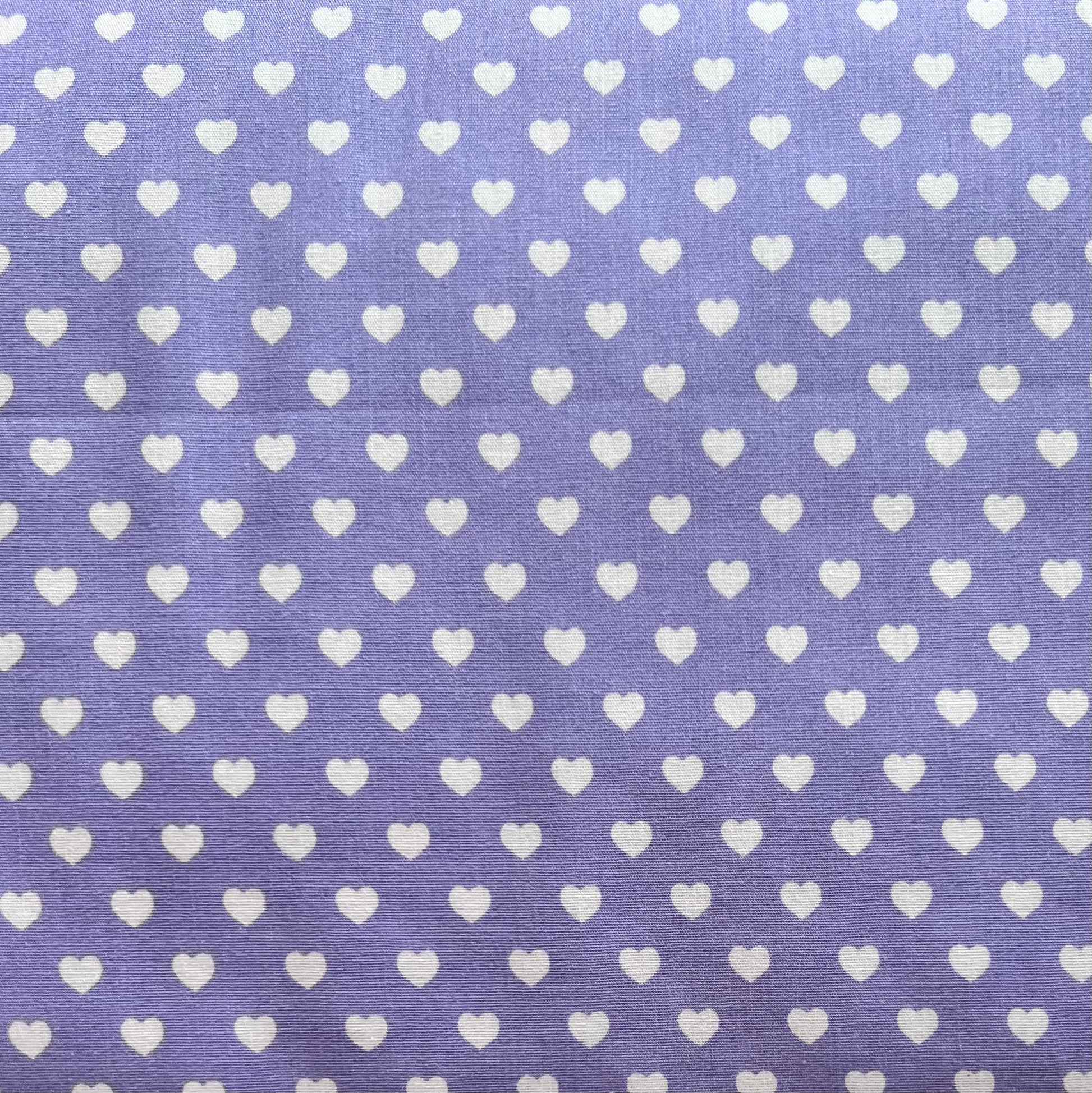 Baumwollstoff FLIEDER mit weißen 5 mm HERZEN, 140 cm breit, Herzenstoff