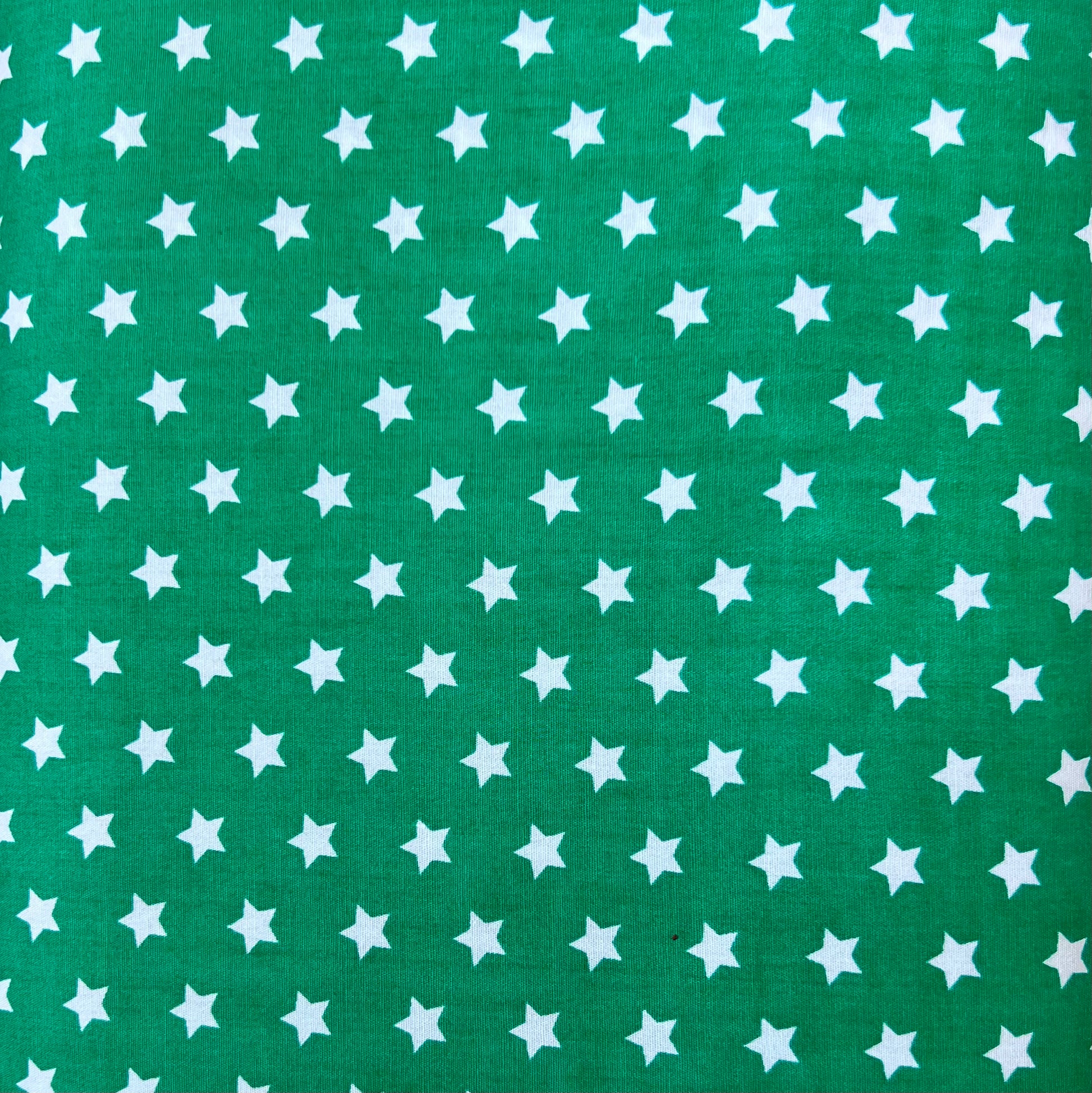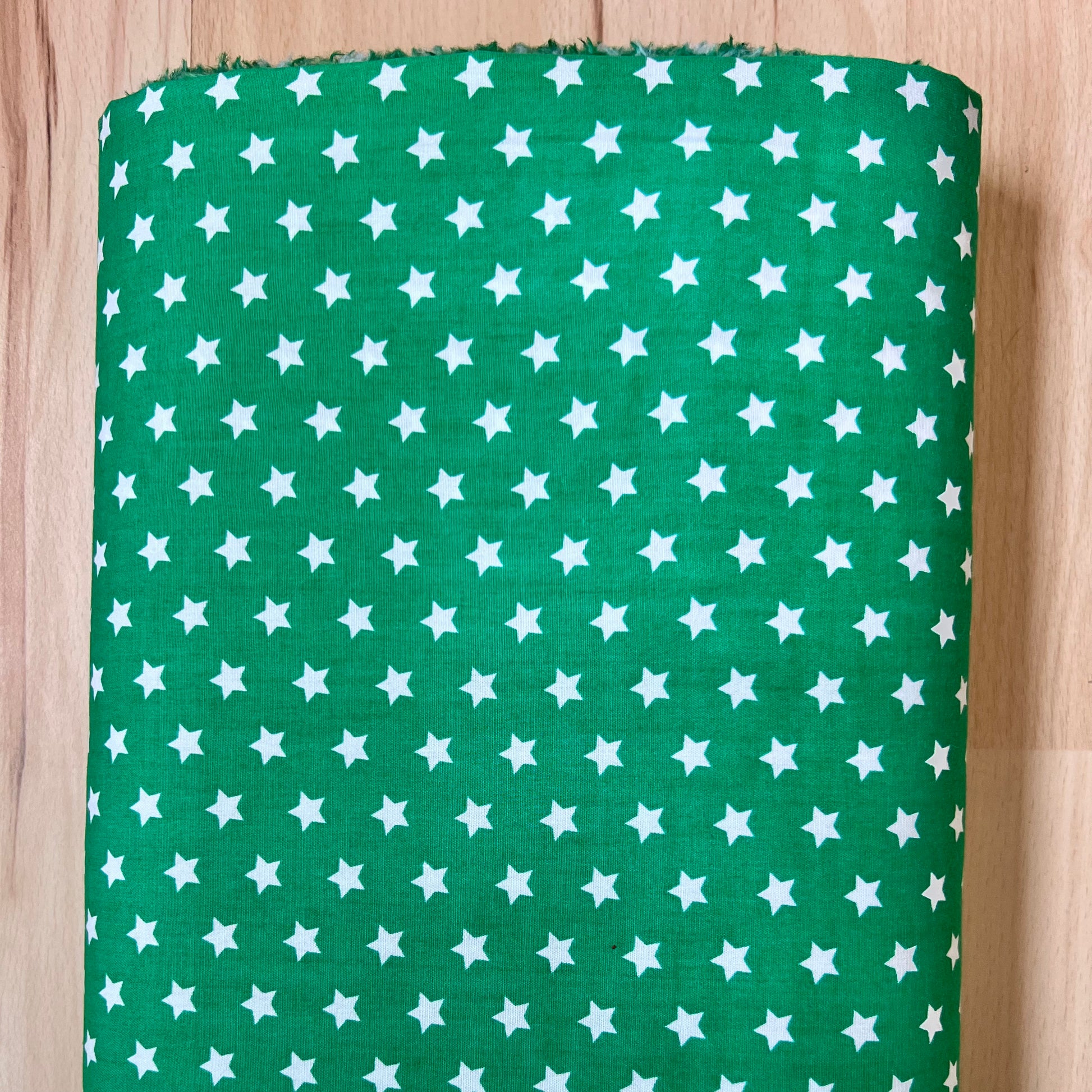Dieser Baumwollstoff in lebendigem Grün ist mit 10 mm kleinen Sternchen übersät - ein fröhliches Design für Groß und Klein. Ob für Kleidung, Accessoires, Deo oder Taschen - der klassische Sternenlook kombiniert mit der frischen Farbe sorgt für gute Laune und vielseitige Einsatzmöglichkeiten. Ideal auch als Kombistoff zu Unis, Karos und Streifen.