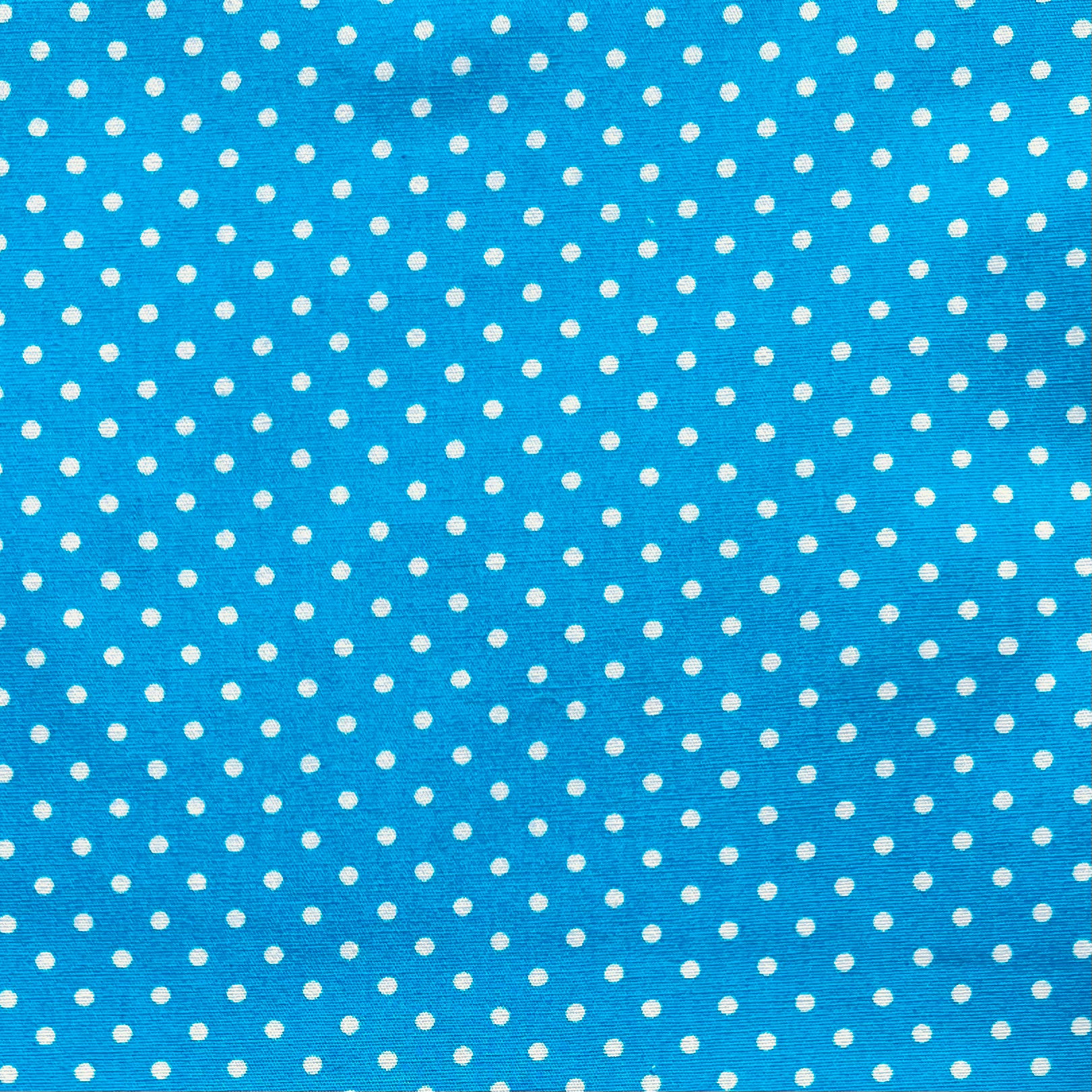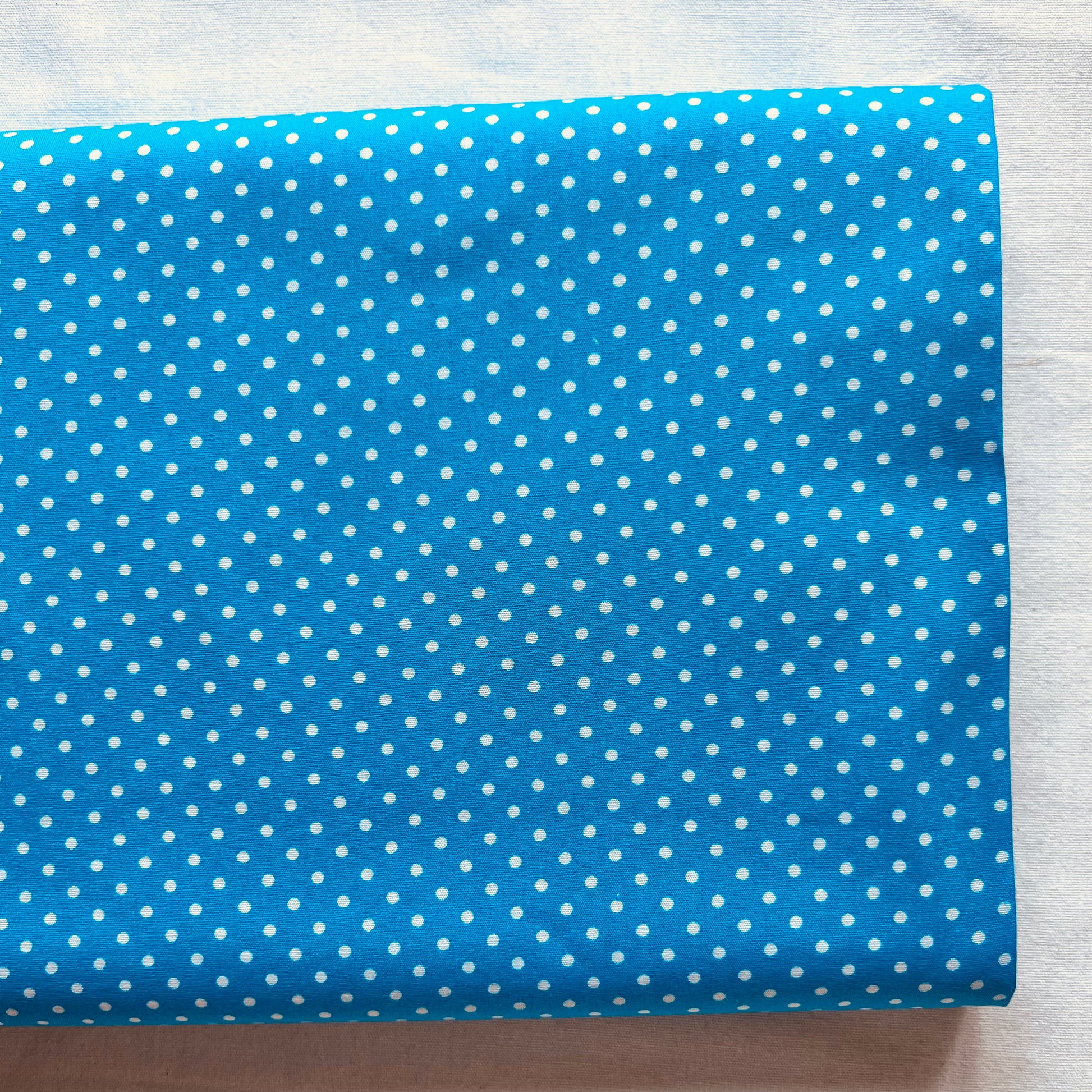 Dieser feine Baumwollstoff in frischem Türkis ist mit kleinen weißen Pünktchen bedruckt und verleiht jedem Nähprojekt eine sanfte, verspielte Note. Perfekt für Kleidung, Accessoires, Heimtextilien, Patchwork oder Dekoration.