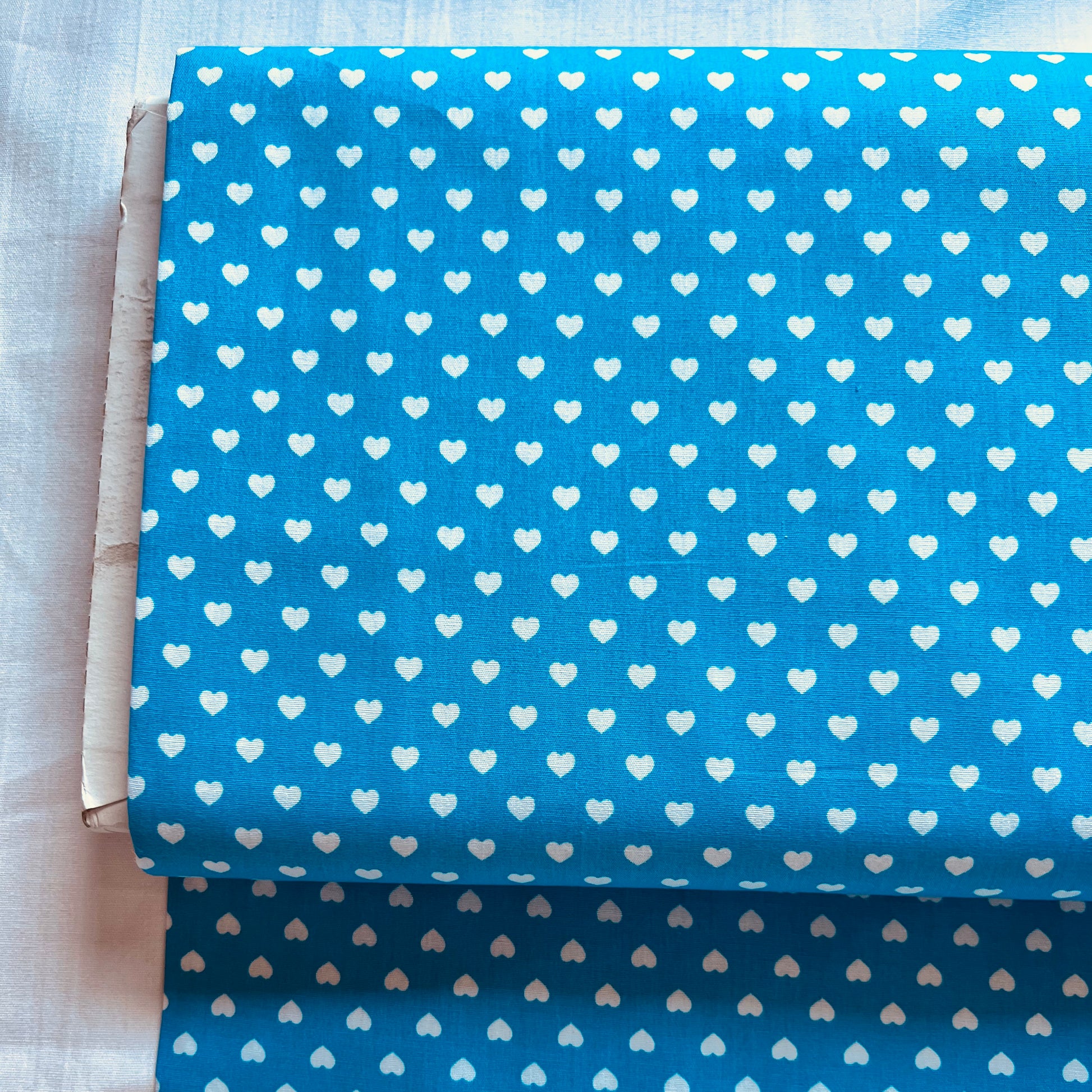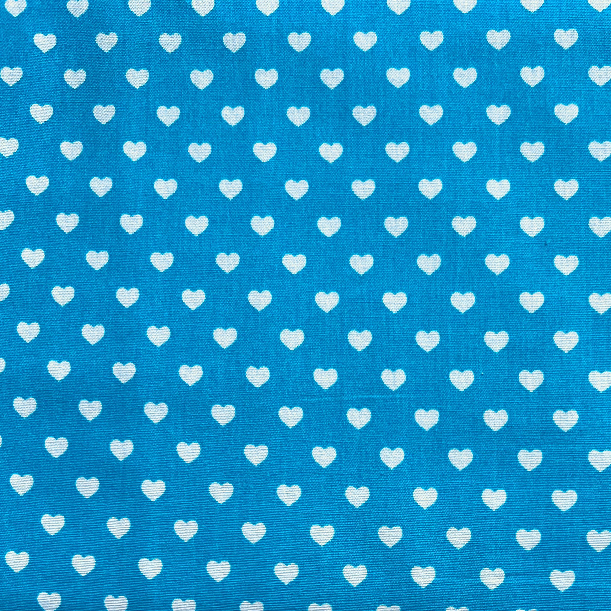 Ein fröhlicher Stoff für liebevolle Nähprojekte: Der türkise Baumwollstoff ist gleichmäßig mit weißen Herzen bedruckt und bringt eine verspielte Note in deine Kreationen. Perfekt für Kleidung, Accessoires, Taschen, Kissen, Patchwork oder Deko.