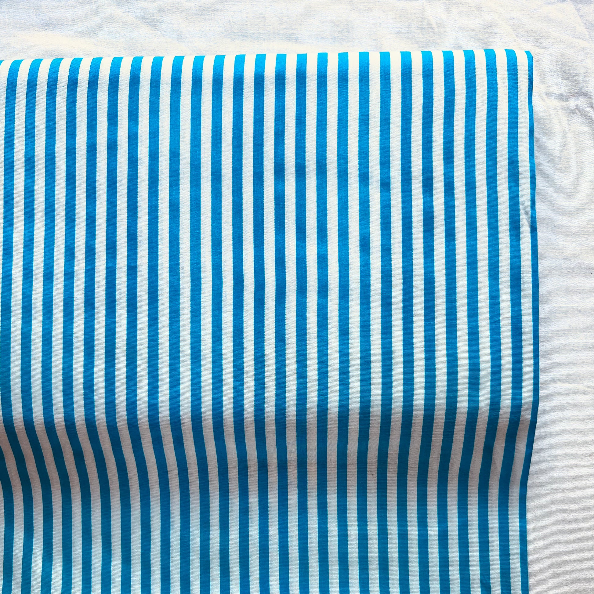 Baumwollstoff TÜRKIS mit weißen 5 mm STREIFEN, 140 cm breit, Streifenstoff