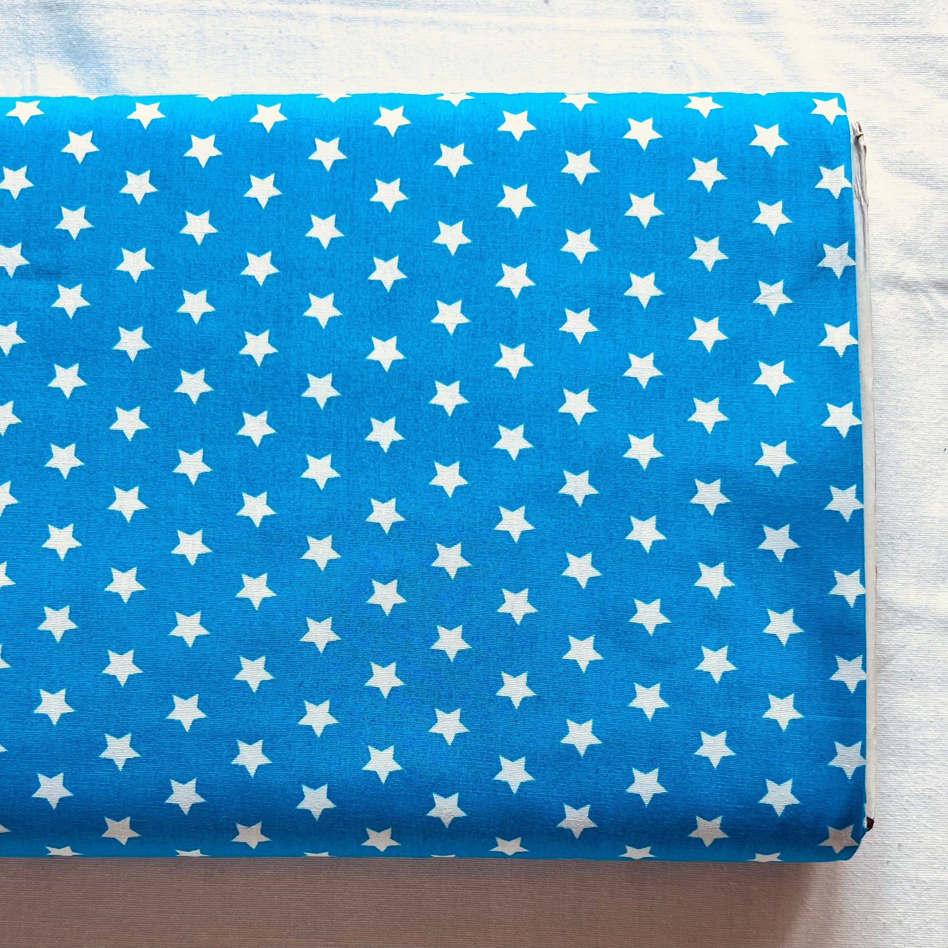 Ein echter Hingucker: Der türkisfarbene Baumwollstoff mit weißen 10 mm großen Sternen bringt gute Laune in jedes Projekt. Perfekt für Accessoires, Kleidung, Patchwork, Taschen, Heimtextilien oder Deko. Ein frischer, verspielter Stoff mit einem Hauch Sternenzauber.