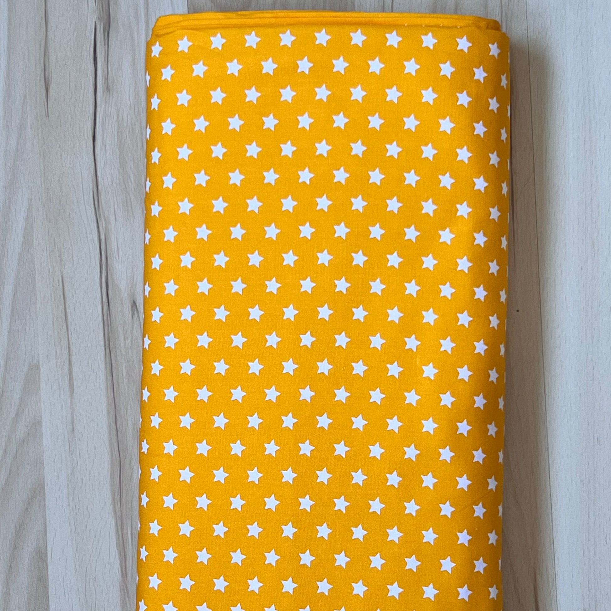 Baumwollstoff GELB mit weißen 10 mm STERNEN, 140 cm breit, Sternchenstoff
