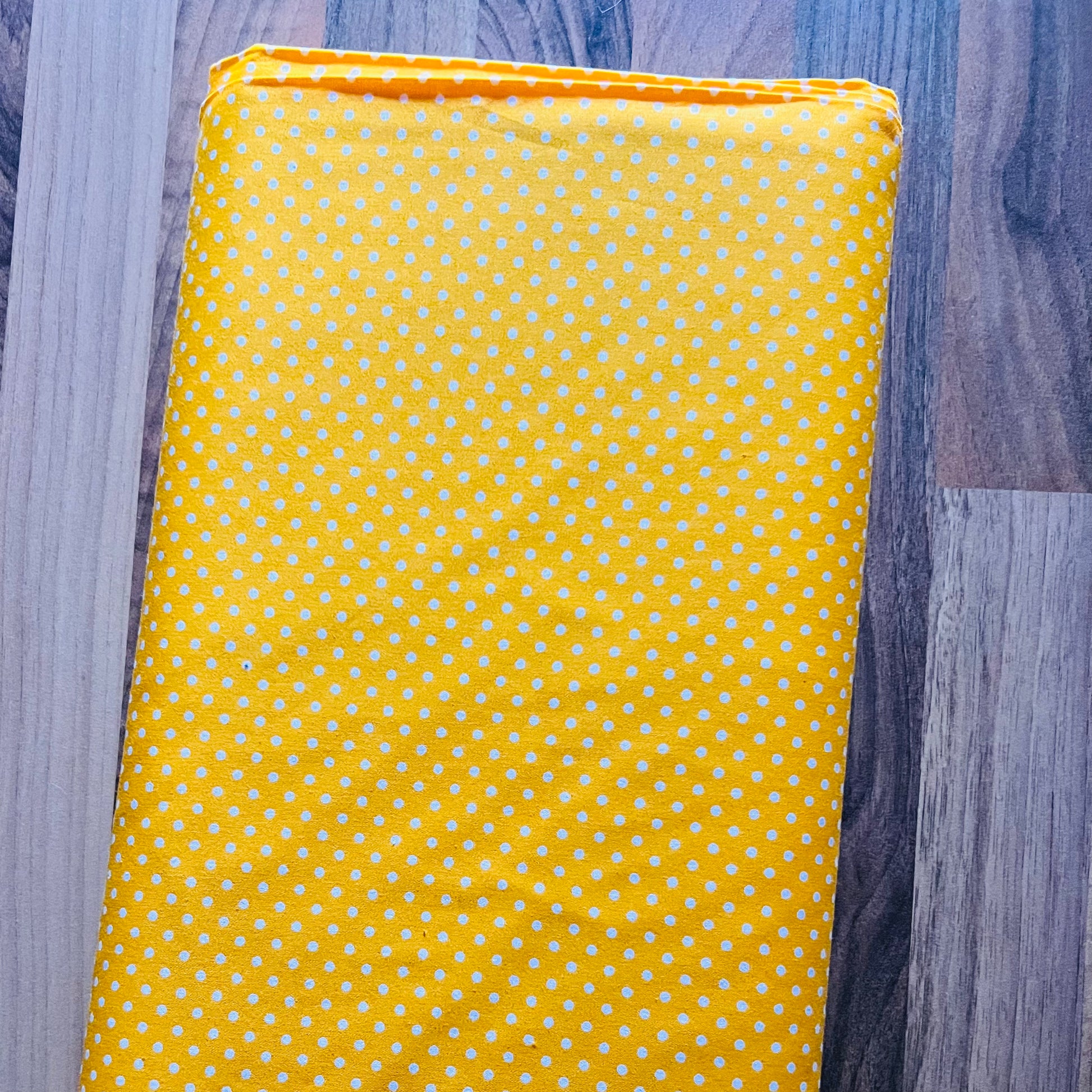 Dieser Baumwollstoff in Gelb ist mit feinen weißen Pünktchen (ca. 2 mm) übersät und bringt eine fröhliche, verspielte Note in deine Nähprojekte. Das klassische Punktemuster eignet sich hervorragend für Bekleidung, Deko, Taschen und vieles mehr.