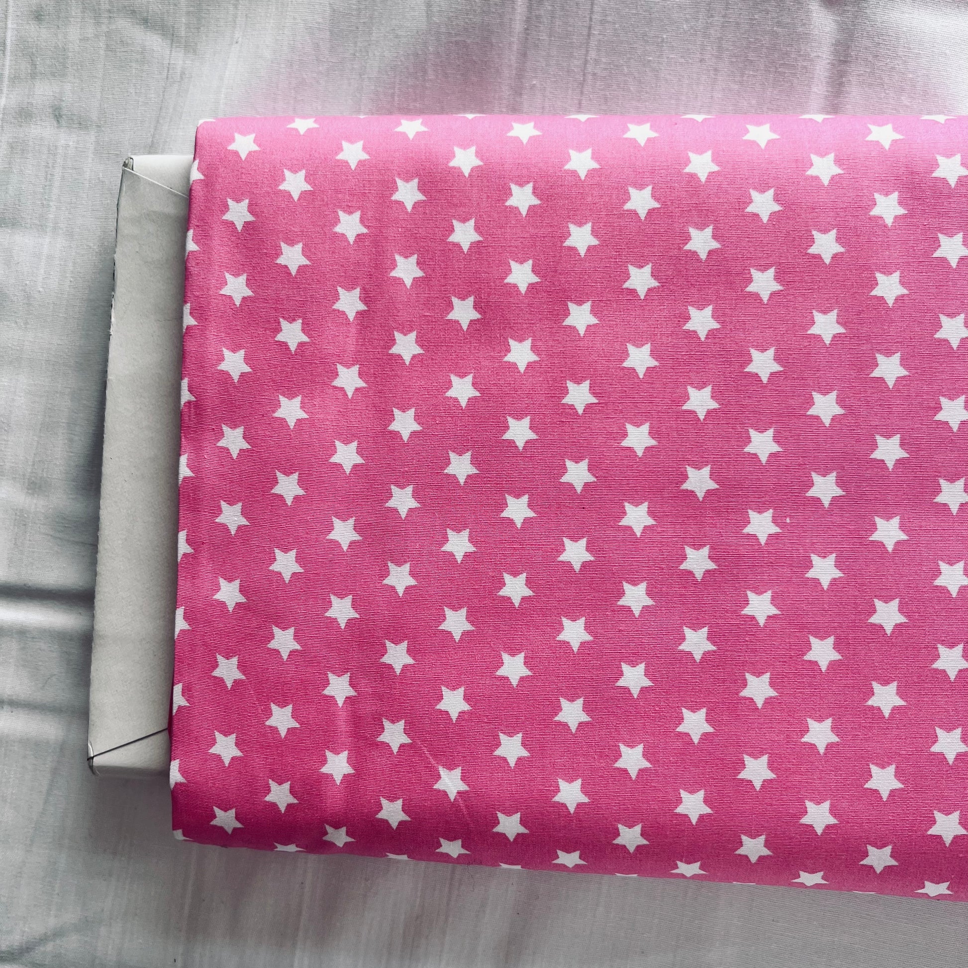 Dieser rosa Baumwollstoff ist mit 10 mm großen Sternen bedruckt - ein klassisches Muster, das sowohl modern als auch verspielt wirkt. Ideal für Accessoires, Kleidung, Patchwork, Taschen, Heimtextilien oder Deko. Ein mädchenhafter Stoff für kreative Projekte mit einem Hauch Sternenzauber.