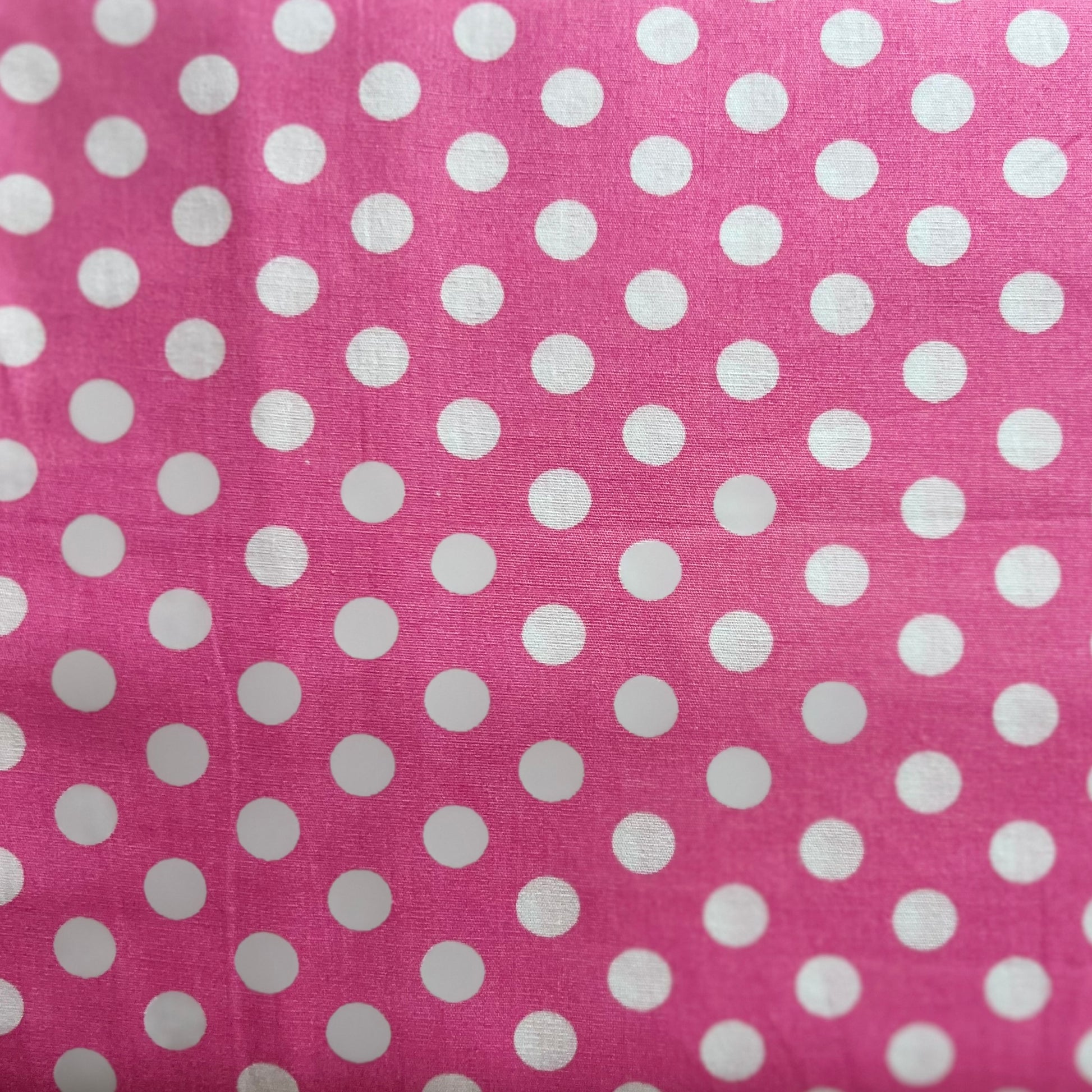 Dieser Baumwollstoff in leuchtendem Rosa ist mit 7 mm großen Punkten bedruckt - ein zeitloses und charmantes Muster, das sich wunderbar eignet für Kleidung, Accessoires, Patchwork, Taschen oder Deko. Die verspielte Optik passt zu vielen Stilrichtungen und lässt sich gut kombinieren.