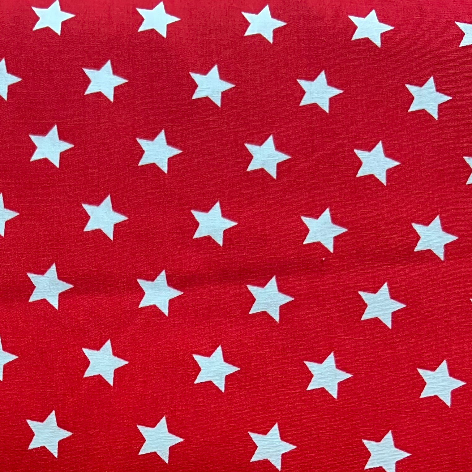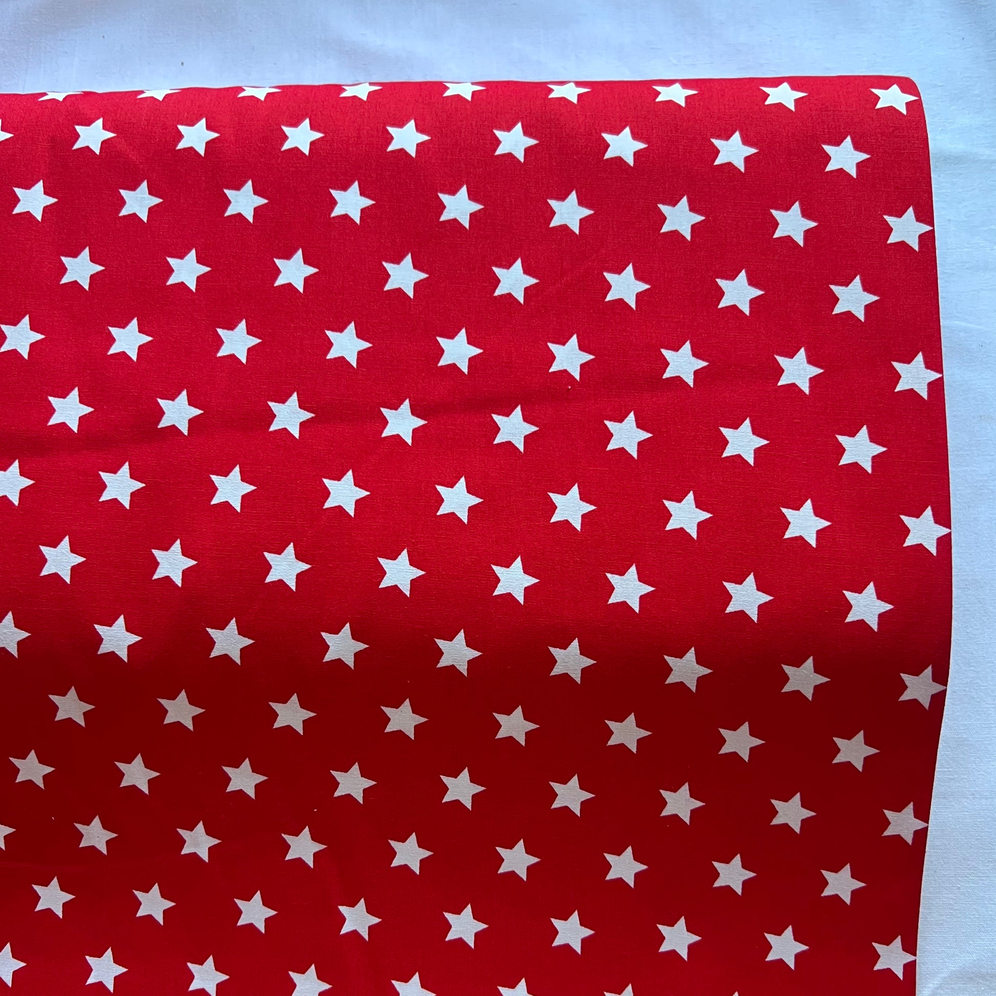 Ein echter Klassiker mit Charme: Dieser rote Baumwollstoff ist mit weißen Sternen (ca. 15 mm groß) bedruckt - ideal für fröhliche oder festliche Nähprojekte, Heimtextilien, weihnachtliche Deko oder als Akzentstoff.