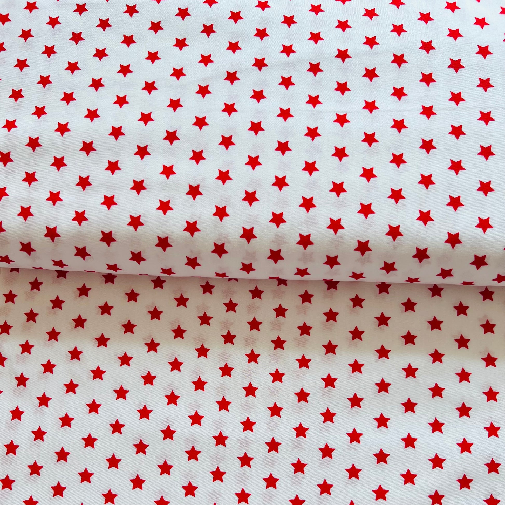 Baumwollstoff WEISS mit ROTEN STERNEN 10 mm, 140 cm breit, Sternchenstoff