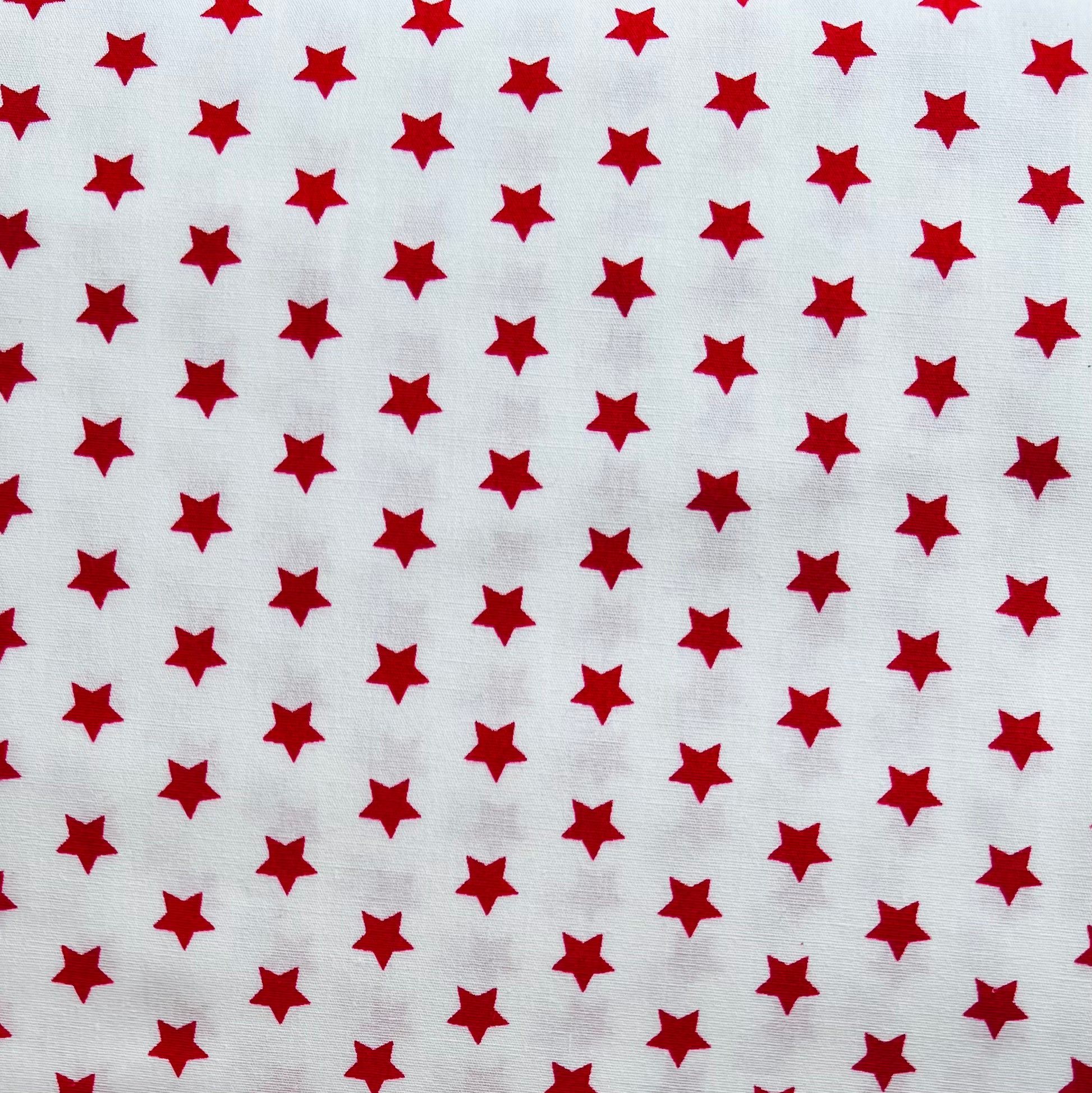 Klar und kontrastreich: Dieser weiße Baumwollstoff mit roten Sternen (ca. 10 mm) ist ein Blickfang für viele Nähprojekte. Ob für festliche Deko, Accessoires, Kissen, Taschen oder Kombistoff - das Sternenmuster verleiht jedem Projekt eine fröhliche, lebendige Ausstrahlung.