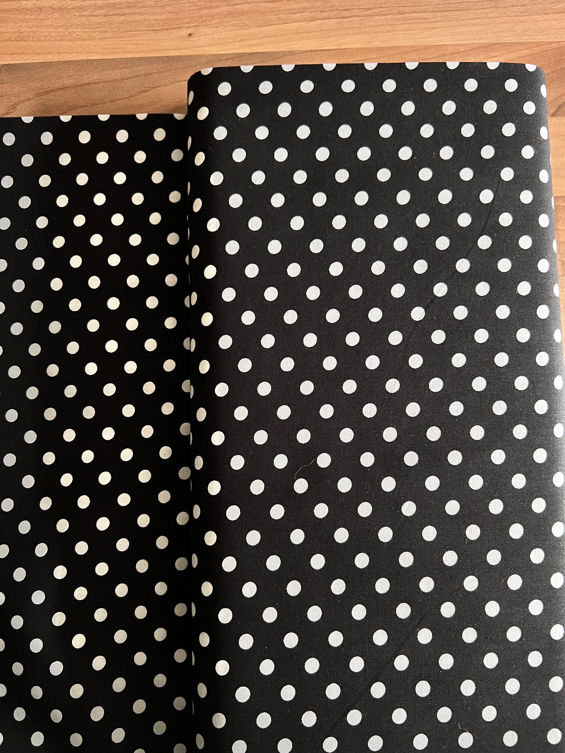 Baumwollstoff SCHWARZ mit weißen 7 mm PUNKTEN, 140 cm breit, Punktestoff Tupfenstoff