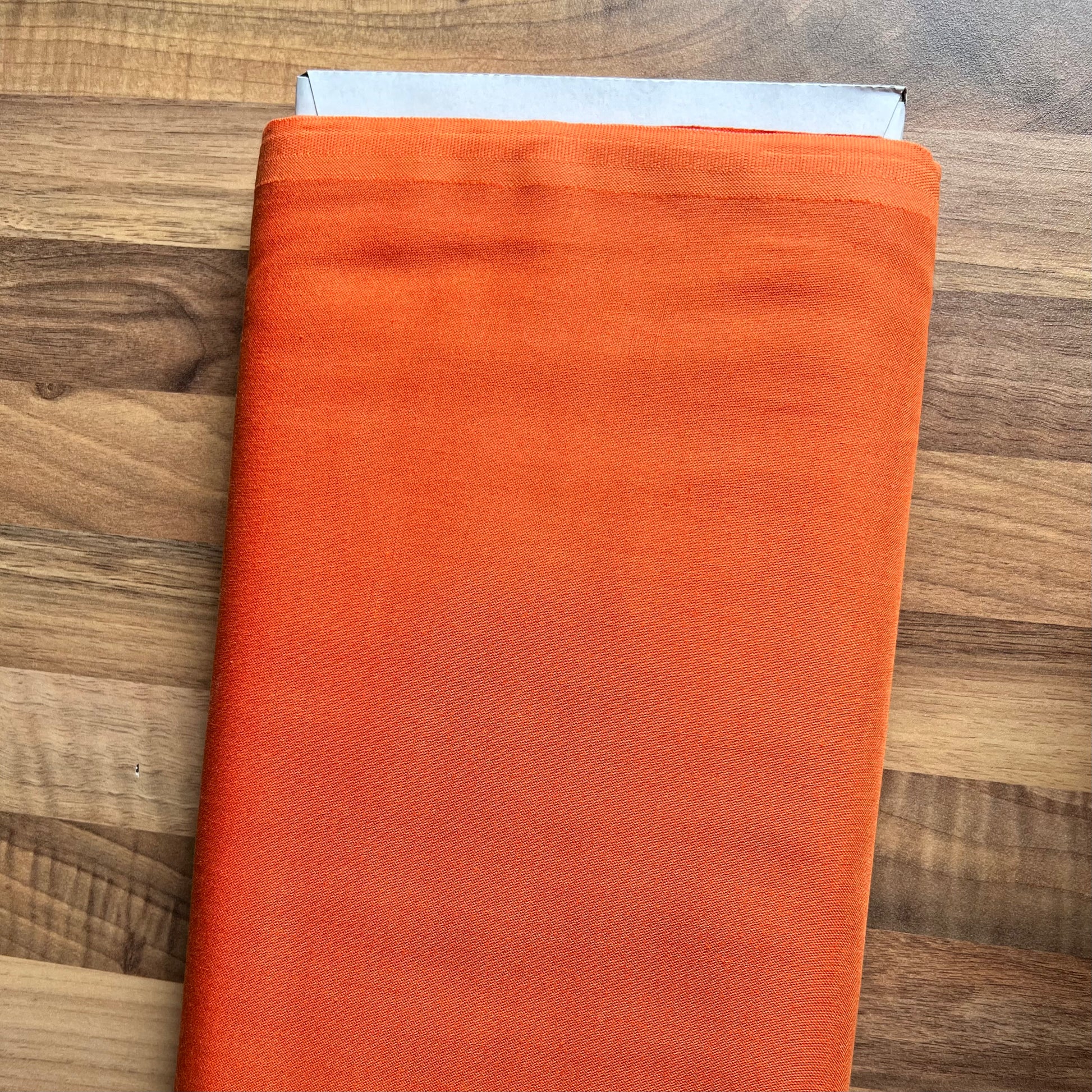 Dieser unifarbene Baumwollstoff in leuchtendem Orange bringt Farbe in deine Nähprojekte! Ideal als Akzentstoff, Kombipartner oder Hauptstoff für Taschen, Deko, Kleidung oder Accessoires.