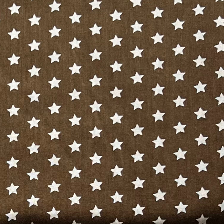 Dieser braune Baumwollstoff ist mit ca. 10 mm großen Sternen bedruckt - ein zeitloses Muster mit natürlichem Charme. Die harmonische Farbkombination macht ihn ideal für Accessoires, Kleidung, Patchwork, oder Deko. Ein vielseitiger Stoff für kreative Projekte mit einem Hauch von Gemütlichkeit.