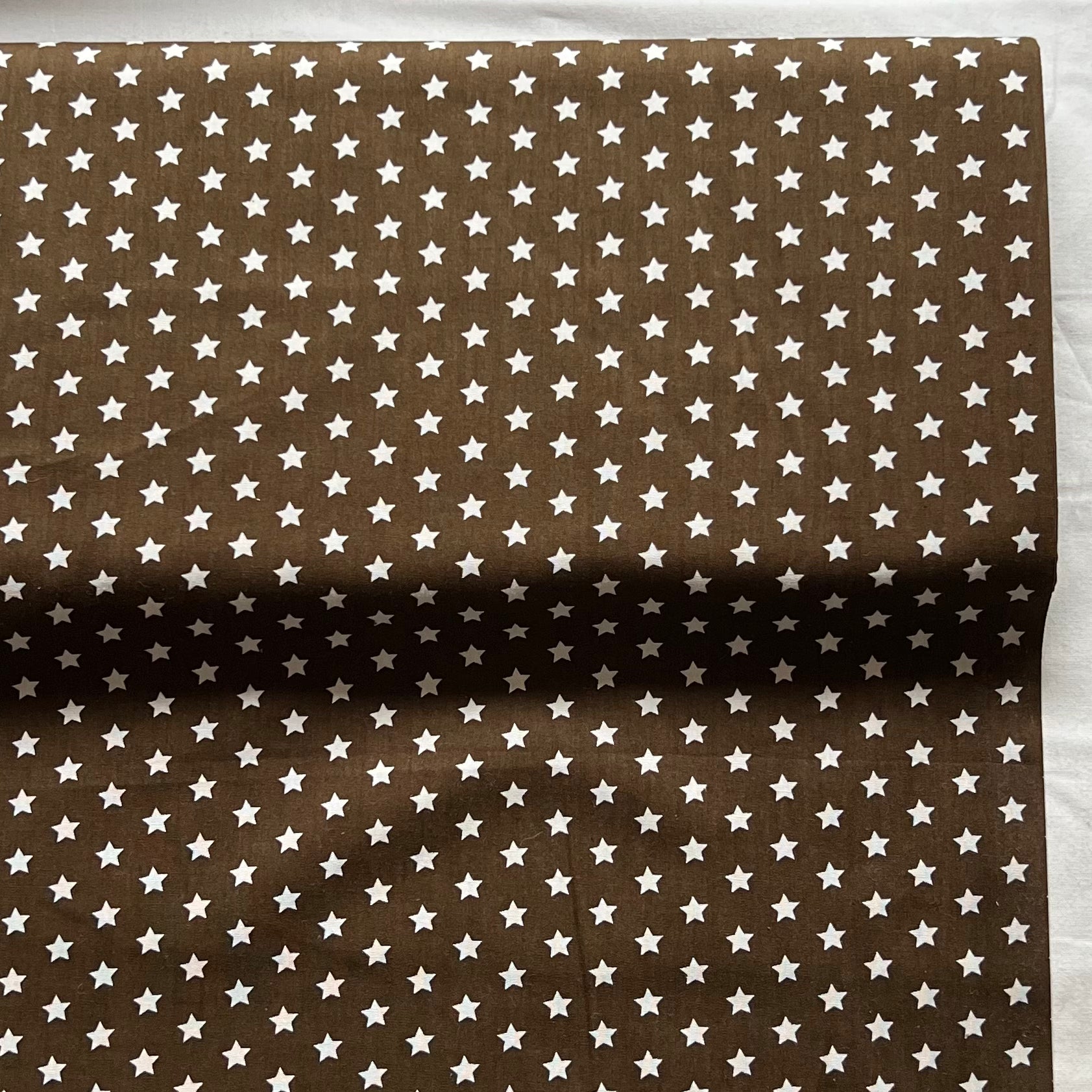Baumwollstoff BRAUN mit WEISSEN STERNEN 10 mm, 140 cm breit, Sternchenstoff