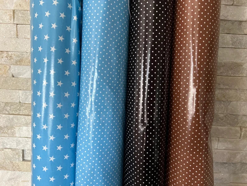 Material: 100% Baumwolle mit glänzender PU-Beschichtung