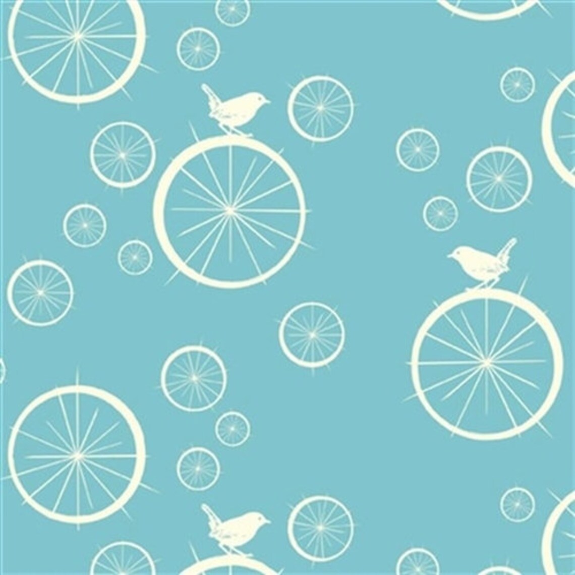 Birch Fabrics Biobaumwollstoff BIRDIE SPOKES POOL Popeline Geometrisches Muster mit Vögel in Poolblau
