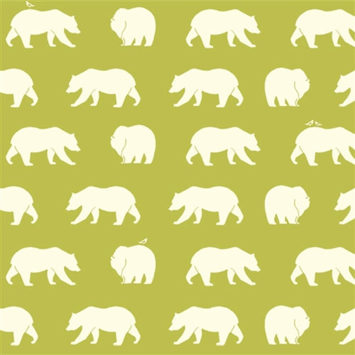 Birch Fabrics Biobaumwolle BEAR HIKE GRASS Popeline mit Bärenmotiv in Grün