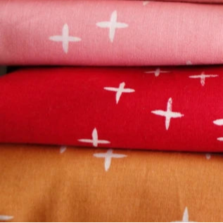 Der Birch Biobaumwollstoff Wink Pink aus der Mod Basics 3 Kollektion bringt Energie und Frische in deine Nähprojekte. Das leuchtend rote Hintergrund kombiniert mit kleinen weißen Pluszeichen schafft ein modernes, zeitloses Design mit besonderem Charakter. fröhliche Kinderkleidung oder bunte Wohnaccessoires.