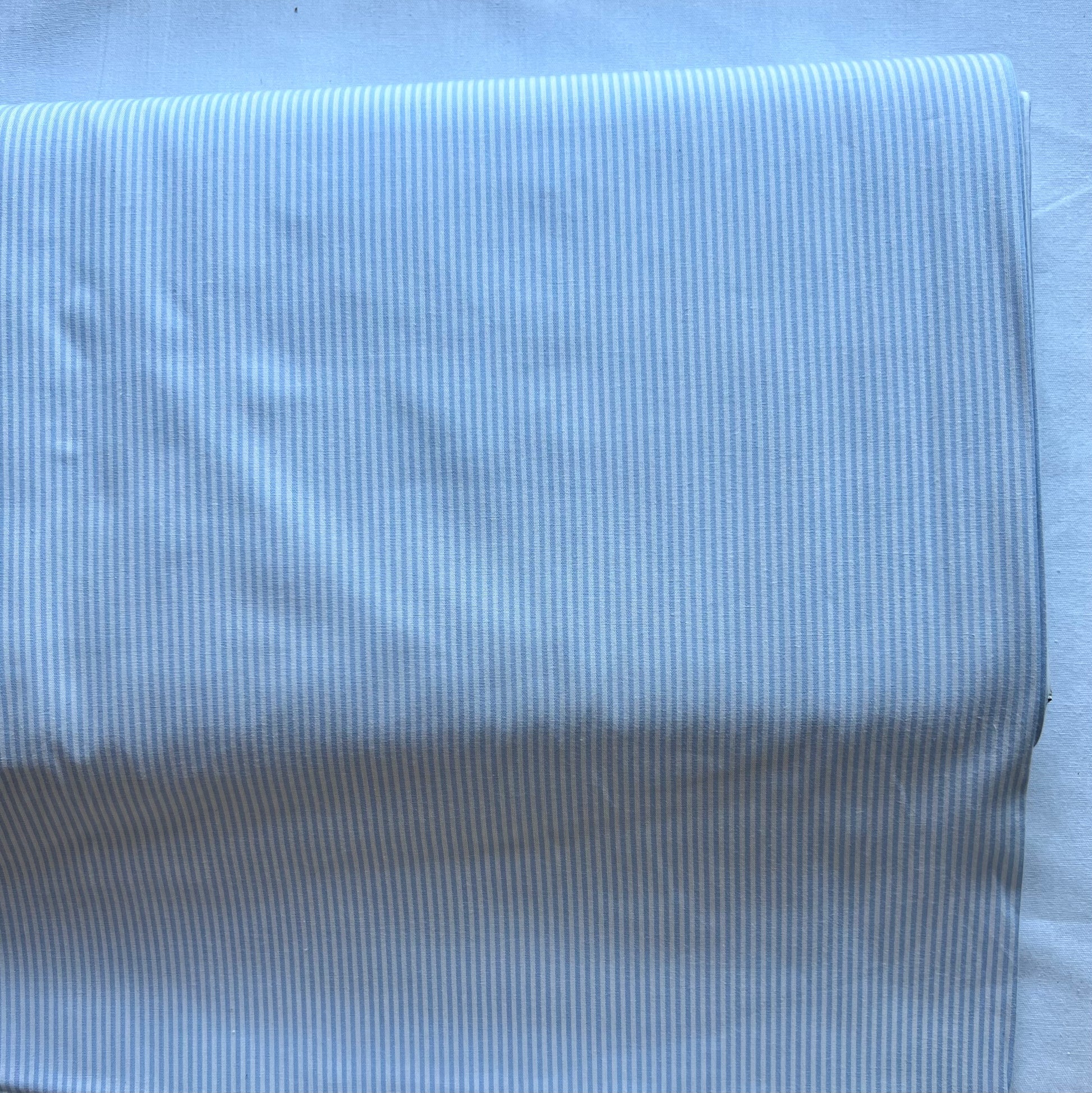 Baumwollstoff HELLBLAU mit weißen 1 mm STREIFEN, 140 cm breit, Streifenstoff