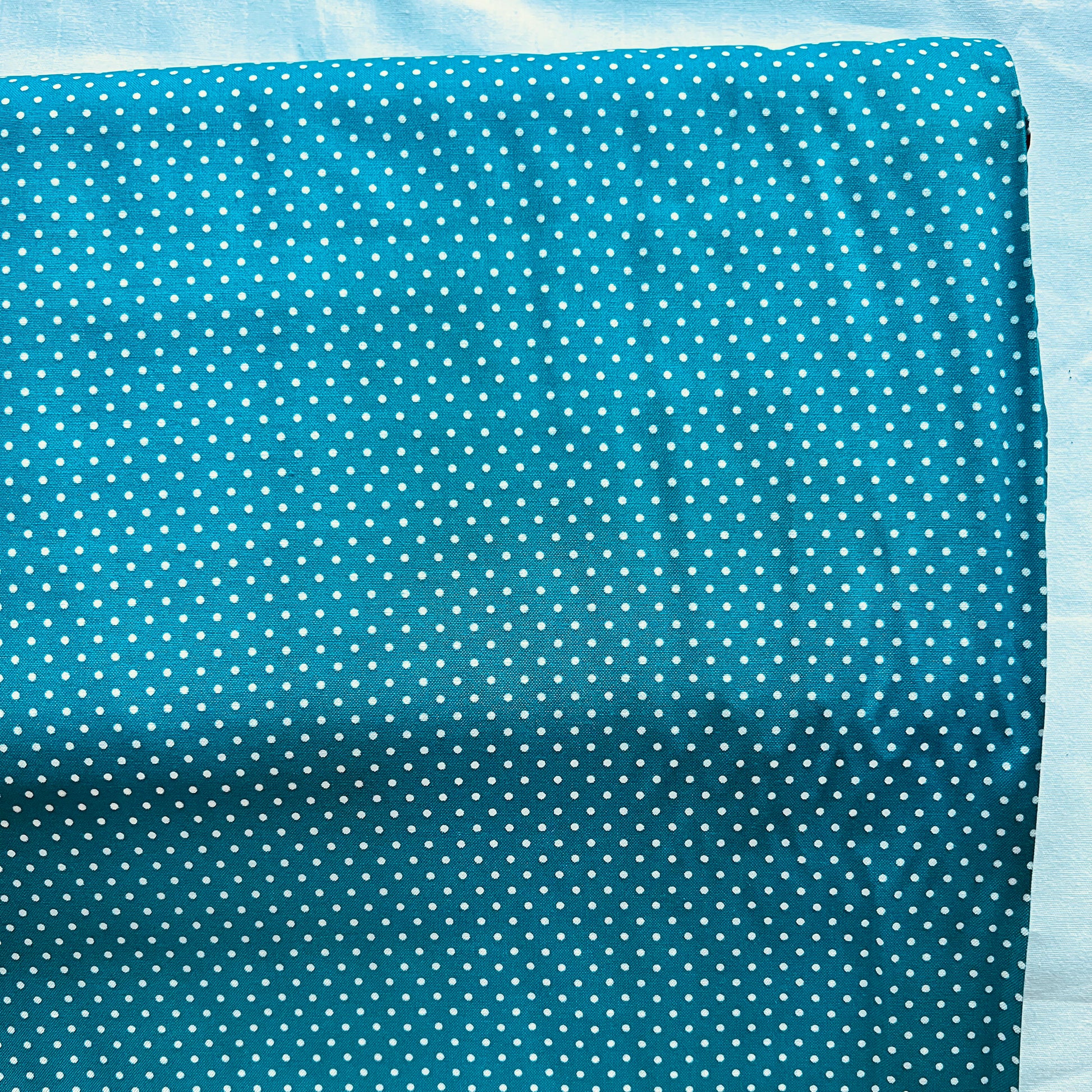 Baumwollstoff PETROL mit weißen 2 mm PÜNKTCHEN, 140 cm breit, Punktestoff Tupfenstoff